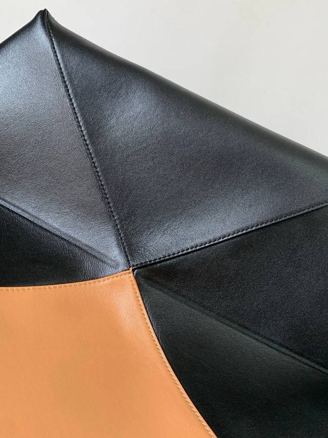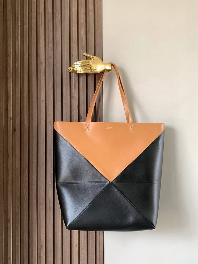Large New Glossy Calfskin Tote Bag Puzzle Fold Handbag. This large tote bag features a geometric design that's so practical and stylish I haven't seen in a long time. Continuing the geometric aesthetic of the Puzzle series, inspired by origami bags, this Puzzle Fold Tote effortlessly switches between three-dimensional and flat designs. Two sizes are available for reference: the large size offers better capacity, while the small size is adorable. The leather is incredibly fine and glossy, and the bag itself is super lightweight and foldable, making it perfect for everyday commuting with a laptop, or for frequent business trips like mine