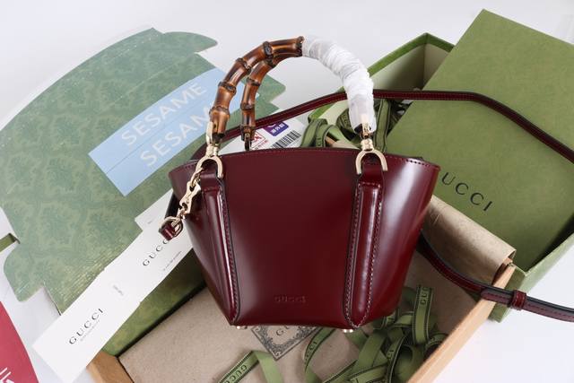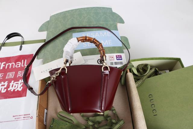 (Large Quantity Price) Description: This bamboo-handled tote bag cleverly blends the brand's exquisite craftsmanship with classic patterns, adding a touch of elegance to the autumn/winter women's fashion show. This basket-shaped tote bag features a hexagonal base, showcasing the brand's artisans' superb skills in every detail.