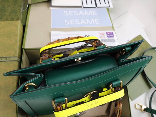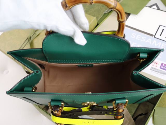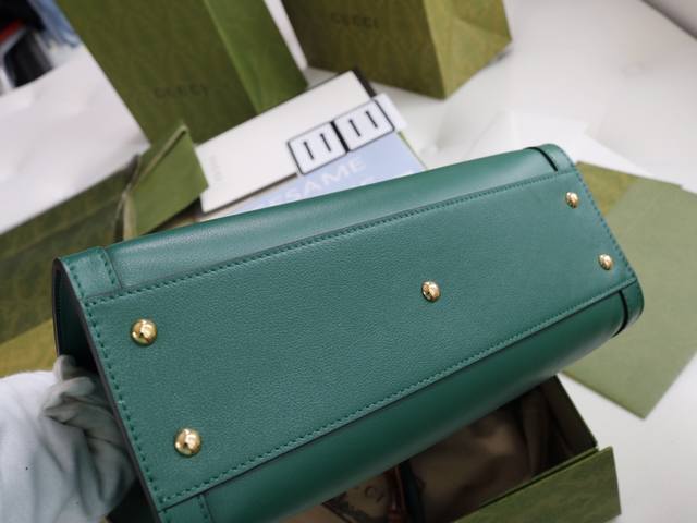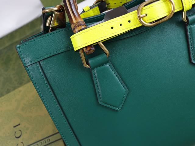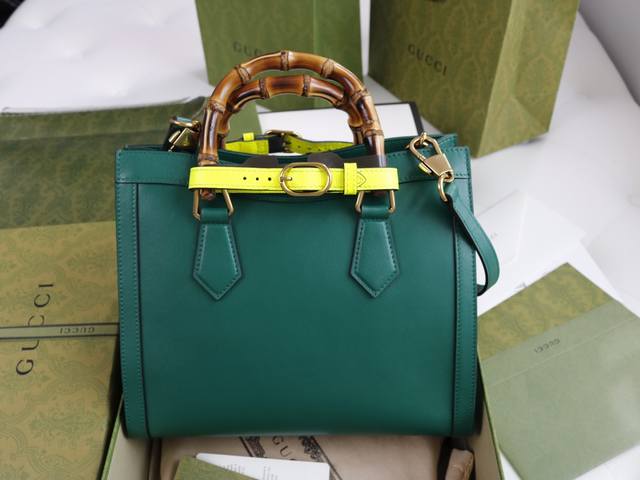 (Large Quantity Price) Description: This small tote bag combines two recognizable brand elements: bamboo handles and double G hardware. The leather material and two leather buckle straps complement each other, highlighting a lively and elegant temperament.