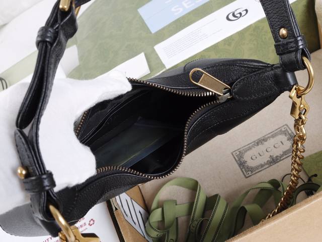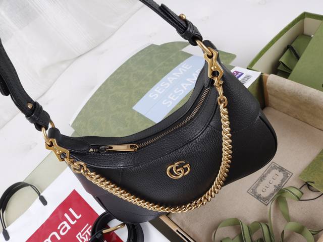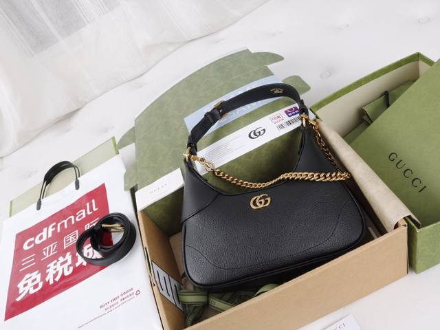 (Large Quantity Price) Introduction: This new crescent-shaped small shoulder bag from the Creator series draws inspiration from the brand's archival elements, crafted from supple leather and adorned with the double-G logo that debuted in the 1970s. It features two shoulder straps: one in leather and the other a distinctive gold-tone metal chain, perfectly embodying the brand's commitment to practical design. Model 731817. Made from high-quality imported goatskin, the leather is soft and supple, and the hardware is a polished brass chain. Dimensions: 25 x 19 x 7 cm.