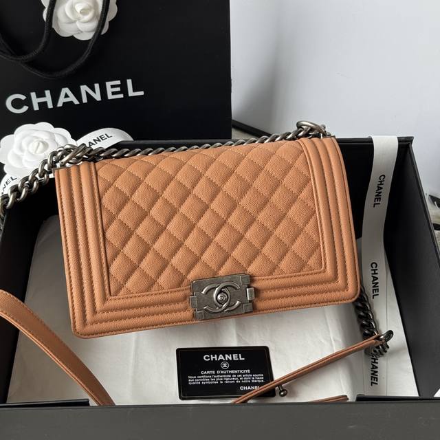 Le Boy series 25cm calfskin leather, item number: 67086, dimensions: 25cm*15cm*9cm. Made of fine-grained Chanel classic Le Boy series. Imported fine-grained calfskin leather; the actual color is very beautiful.