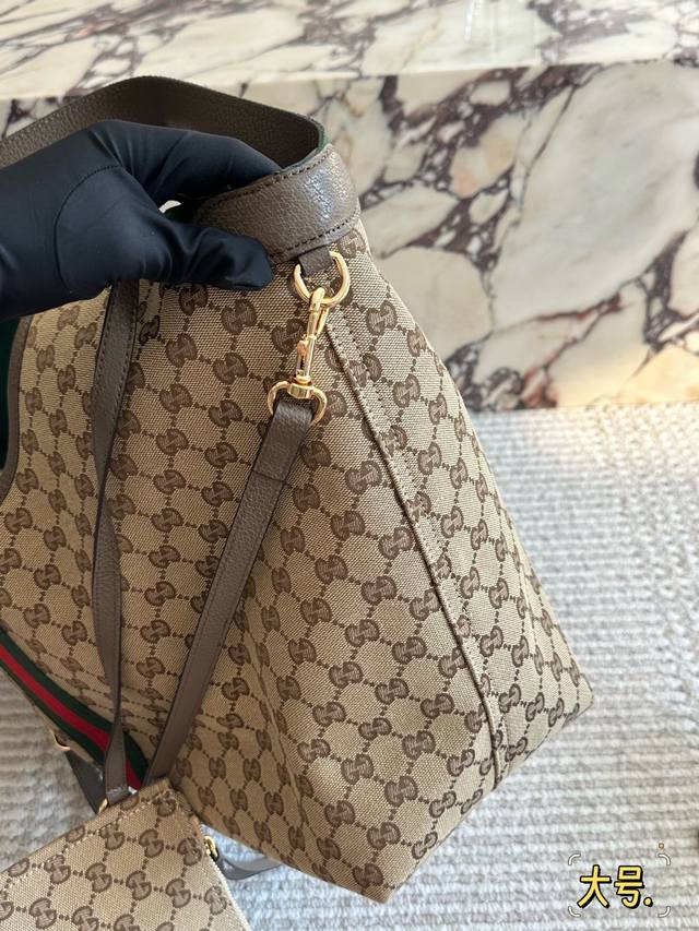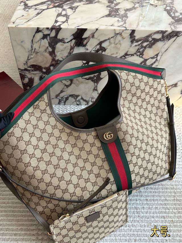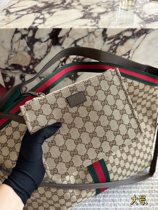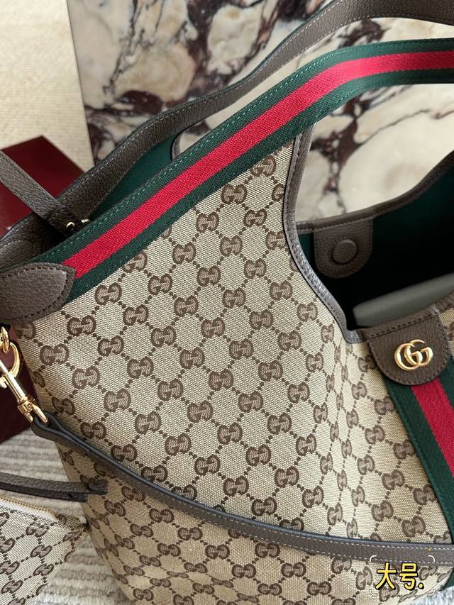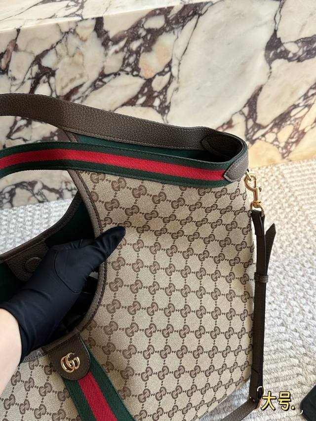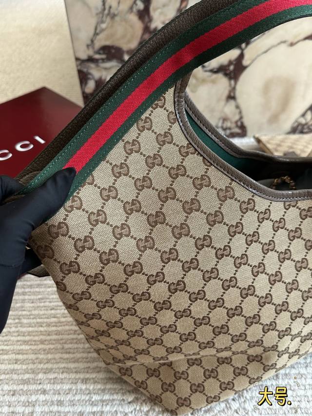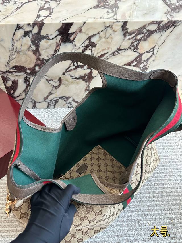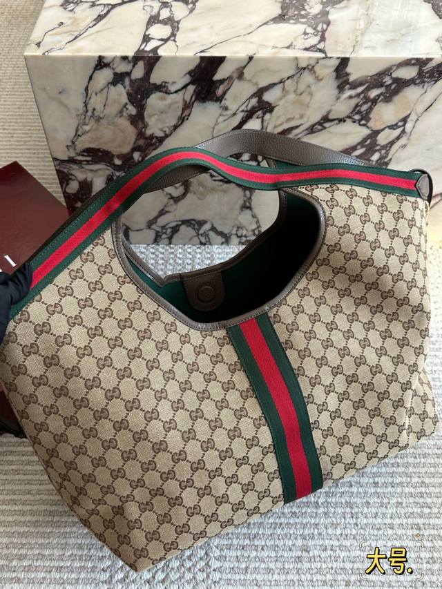 Leather and box included. Gucci Giglio Gg denim tote bag. Dark denim canvas with classic Gg monogram, accented with red and green webbing, a retro yet stylish look. Small size, moderate capacity, suitable for both commuting and casual occasions. Size: Large: 40cm