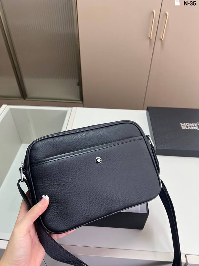 Leather Montblanc camera bag. Stylish and trendy no matter how you style it. Unisex design. N-35 feet, 24 x 17 inches, with box.