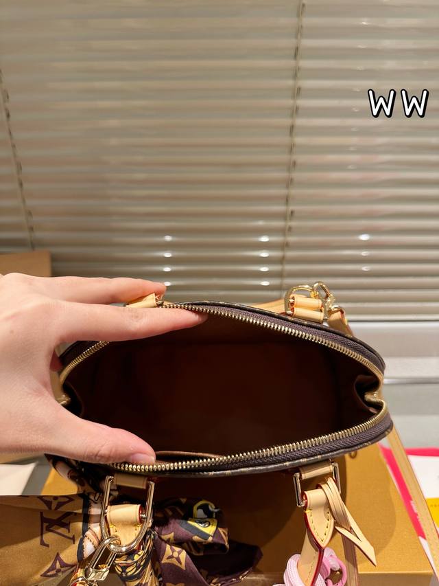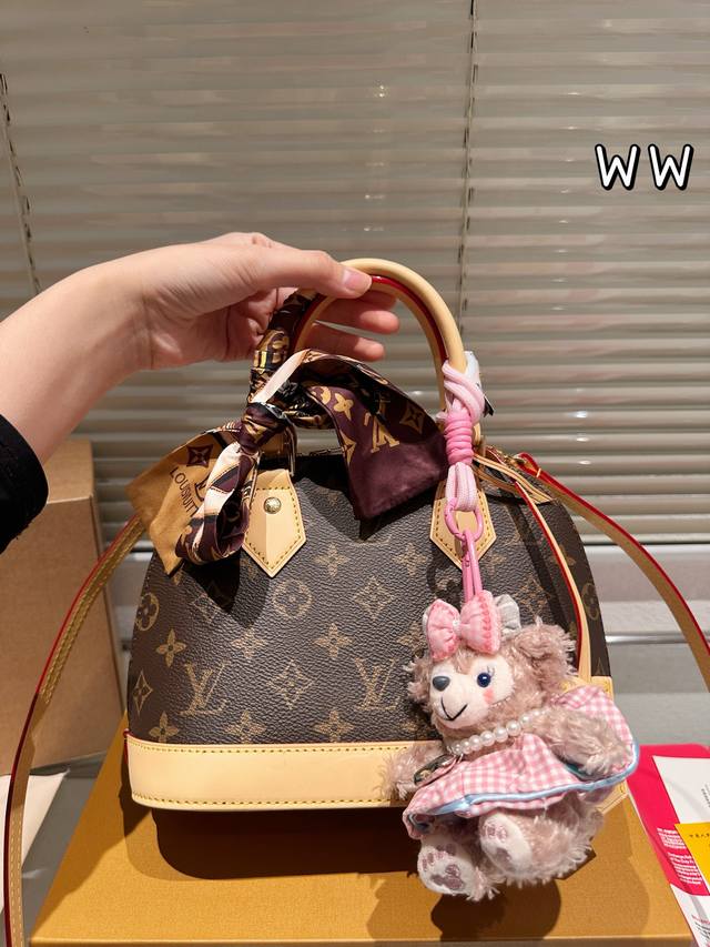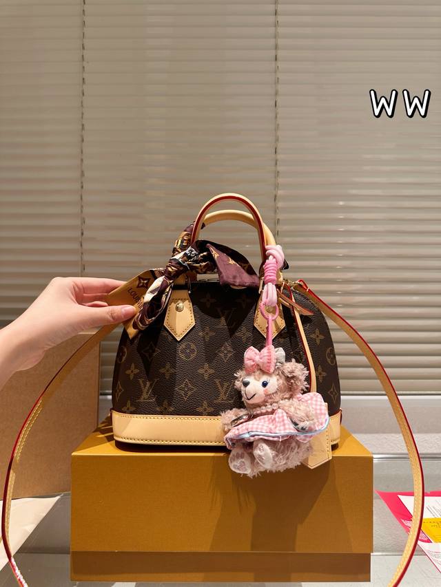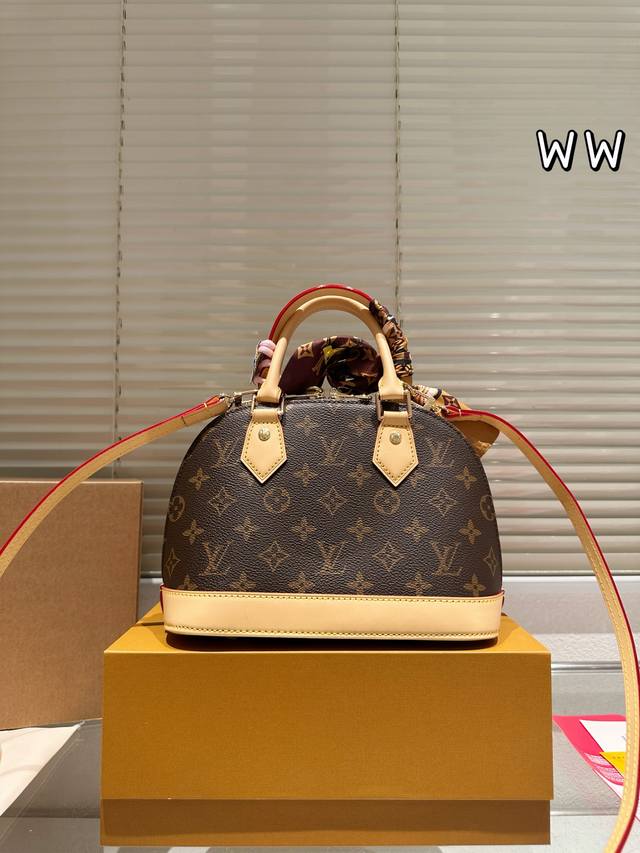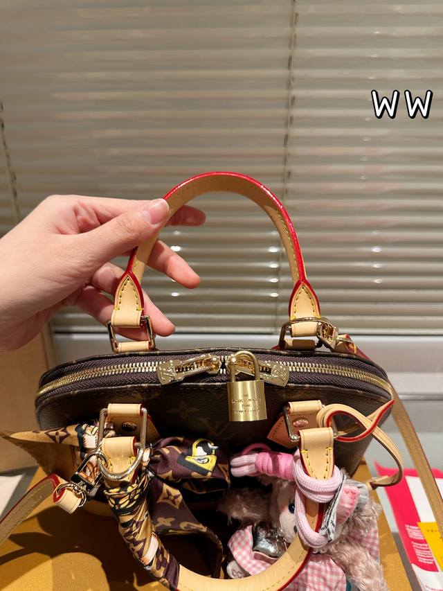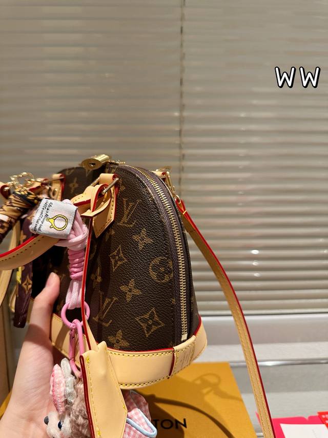 Leather Version Louis Vuitton Alma Bb Print Leather Shell Bag. This Retiro handbag is crafted from the iconic monogram fabric, a timeless classic. Its elegant, understated design and spacious body enhance its practicality. Features: - Color-changing calfskin trim, shiny solid steel gold-tone hardware - Adjustable shoulder strap with a tree-growth shoulder pad and zip closure - Microfiber lining, 24.17cm.