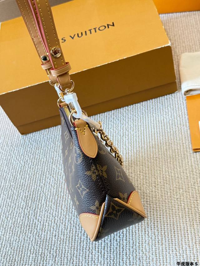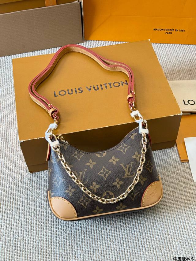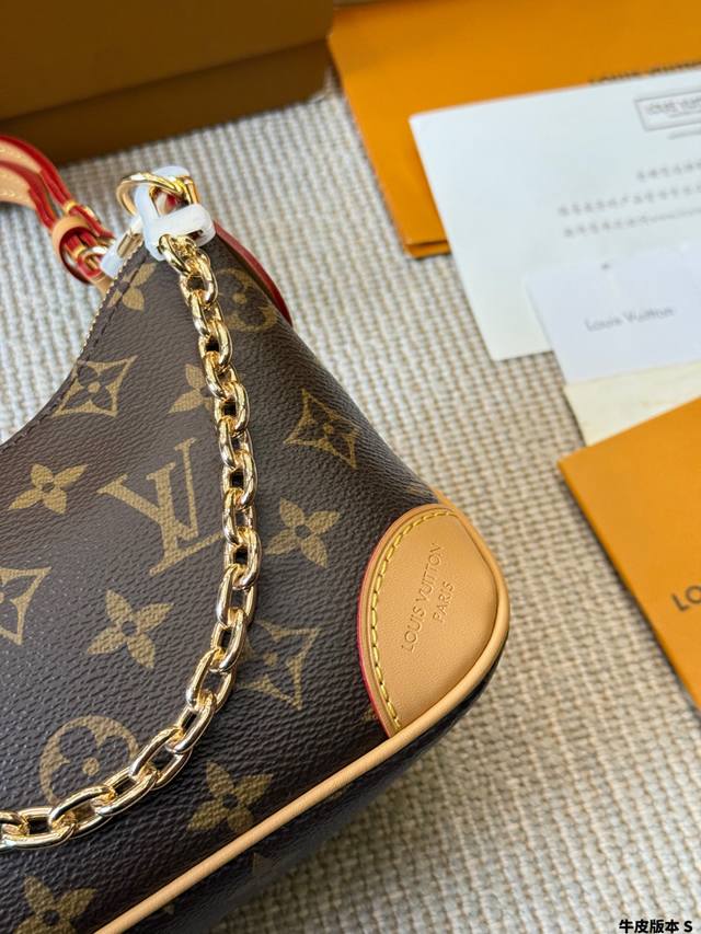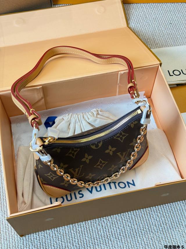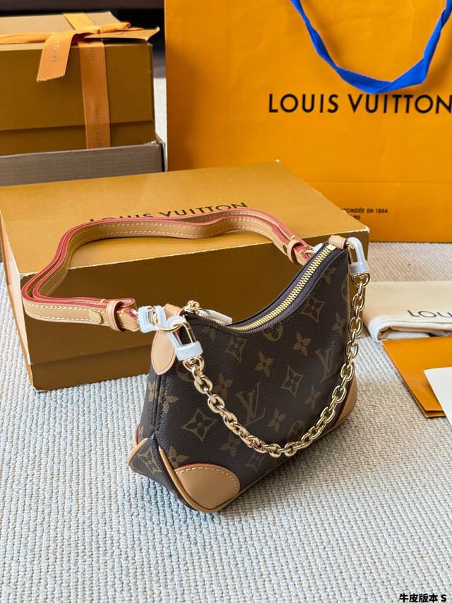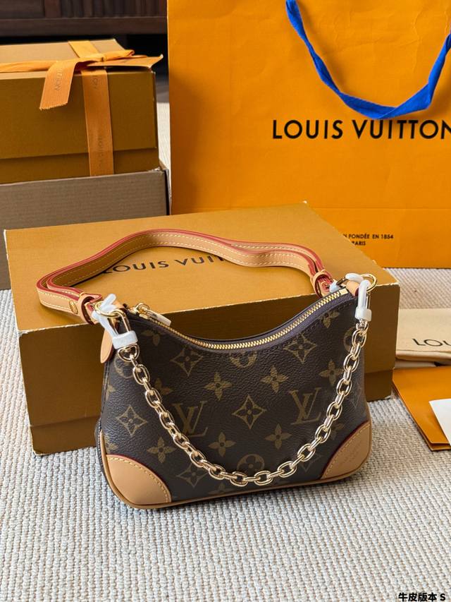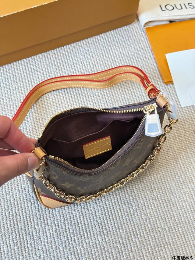 LV Boulogne messenger bag/croissant bag. The new Boulogne size is smaller than before, but it doesn't affect its capacity at all. The design features a gold chain, adding a touch of style and making the bag more versatile. The shoulder strap design is very nice; the length is suitable for all heights, and it can be worn crossbody or shortened to be worn in front of the chest. Removing the shoulder strap and using only the chain makes it a single-piece bag. Therefore, it's suitable for work or outings, from suits to T-shirts, very versatile. This single-piece crossbody bag is all the rage on social media, and is loved by men and women alike. A classic monogram print, a must-have item for celebrities and fashionistas, truly highly recommended. The large capacity meets daily needs. Dimensions: 18 x 11 cm.