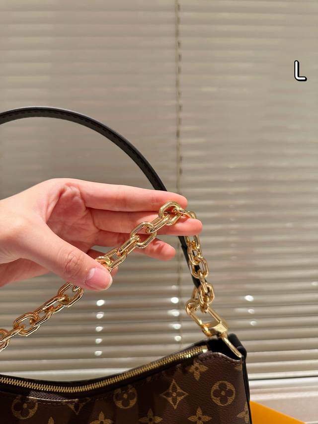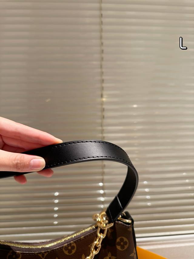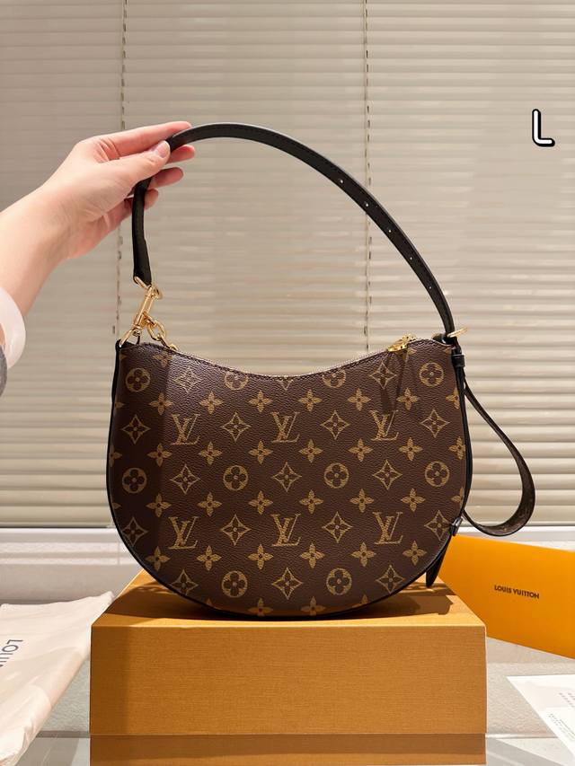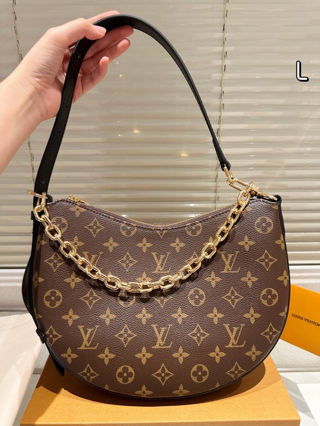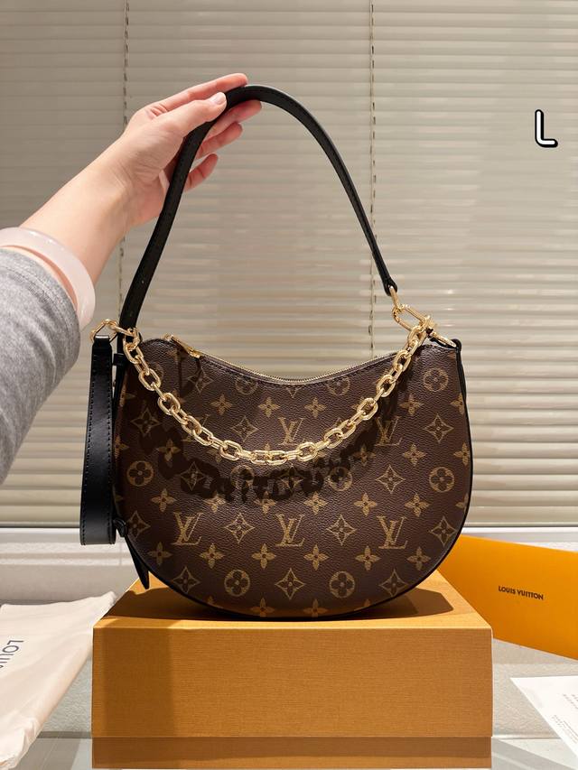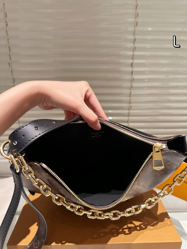 Leather version of the LV Cookie Bb. Full monogram canvas, not vegetable-tanned, exuding durability. This bag shape is really easy to carry! The new LV monogram Cookie Bb is here! A brand new half-moon bag shape, detachable chain and adjustable handle offer a lot of versatility and style. Size: 28cm x 18cm.