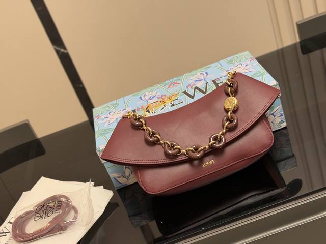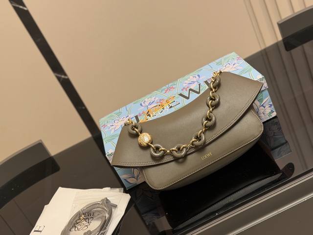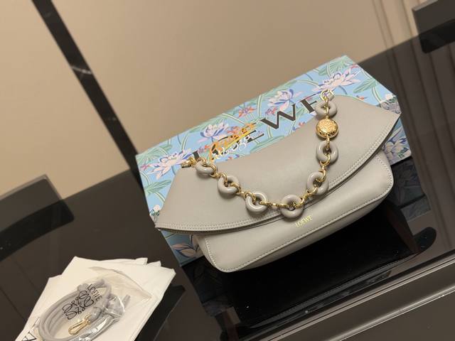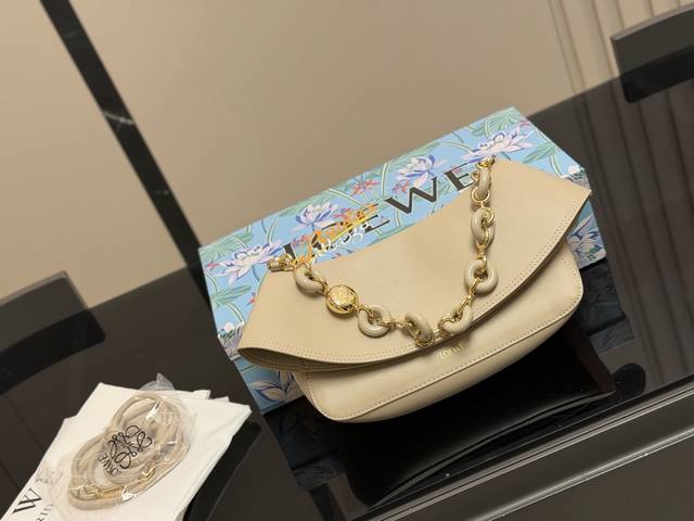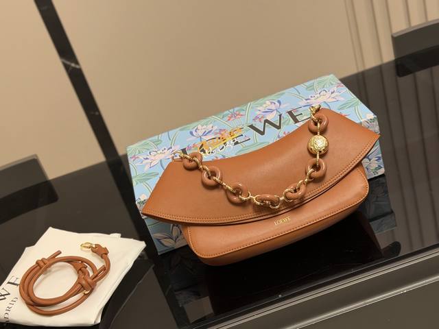 Loewe's new Ola all-leather version is now available! The first Ola was straw-woven, but this latest version is all-leather! It features adjustable double-layer leather shoulder straps with a donut-shaped design. The flap opens to reveal a suede lining. It has a good capacity, is versatile, and has a great design. Size: 26.16cm