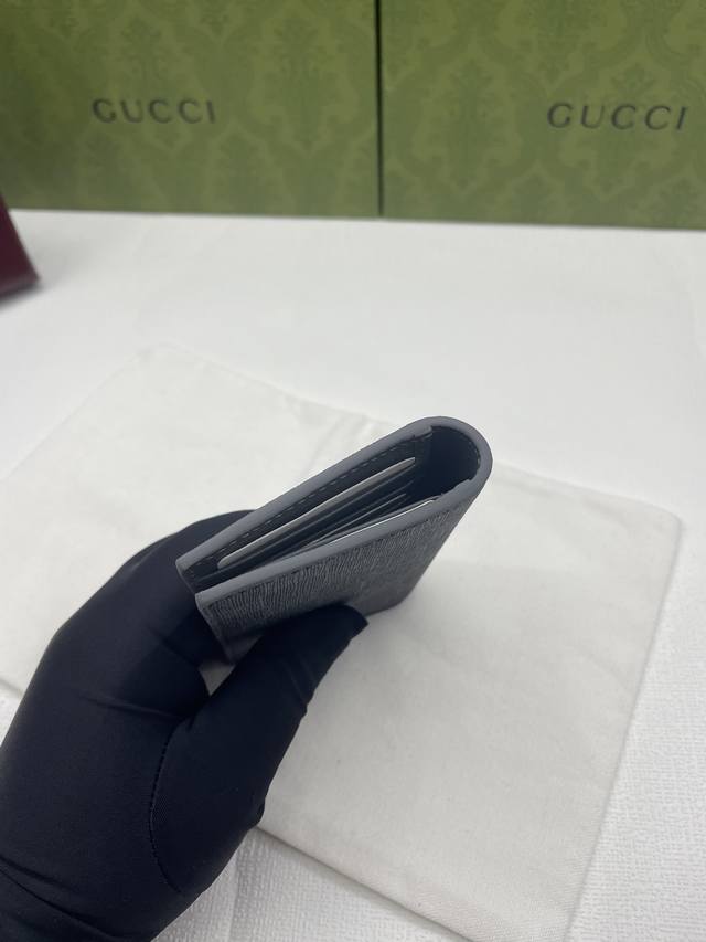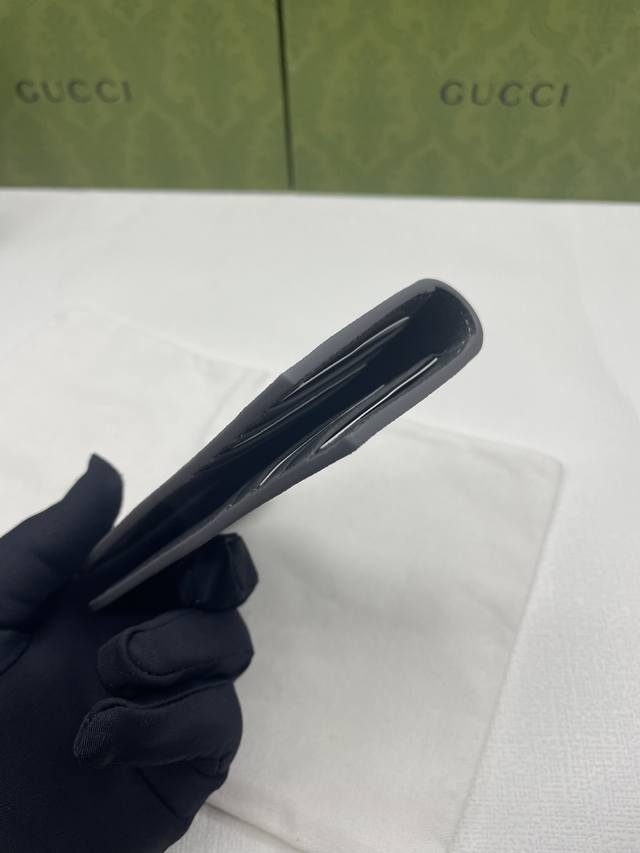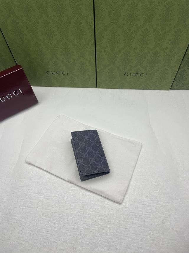 Long card holder with green box bag embellishment and Gg details. The iconic Gg details are cleverly blended with vibrant colors. Crafted from Gg Supreme canvas, this long card holder subtly incorporates red contrasting details, adding a delicate beauty of contrast to this small everyday accessory. Model: 768249. Dimensions when open: 12cm (L) x 15cm (W). Dimensions when closed: 12cm (L) x 7.5cm (W). Color: PVC grey leather.