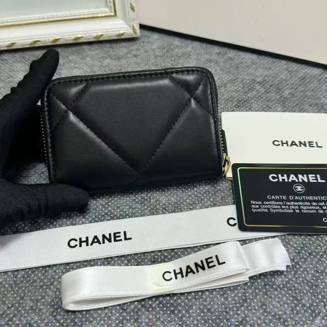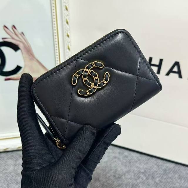 Loss-making price 170, Chanel 19K, a very heavyweight iconic first series oversized quilted pattern, chain-link Cc clasp~ Original lambskin, cardholder model A, size 11*7.5*2.5