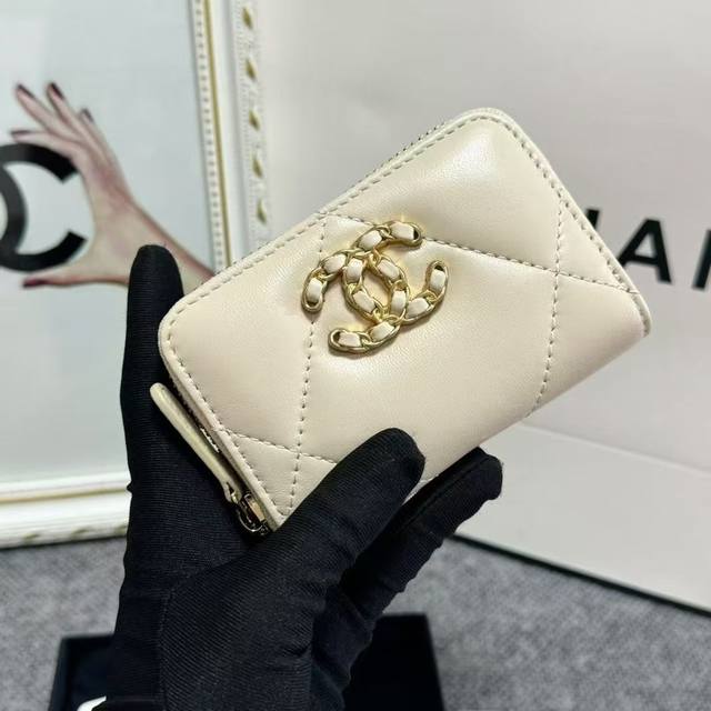 Loss-making price 170, Chanel 19K, a very heavyweight iconic first series oversized quilted pattern, chain-link Cc clasp~ Original lambskin, cardholder model A, size 11*7.5*2.5