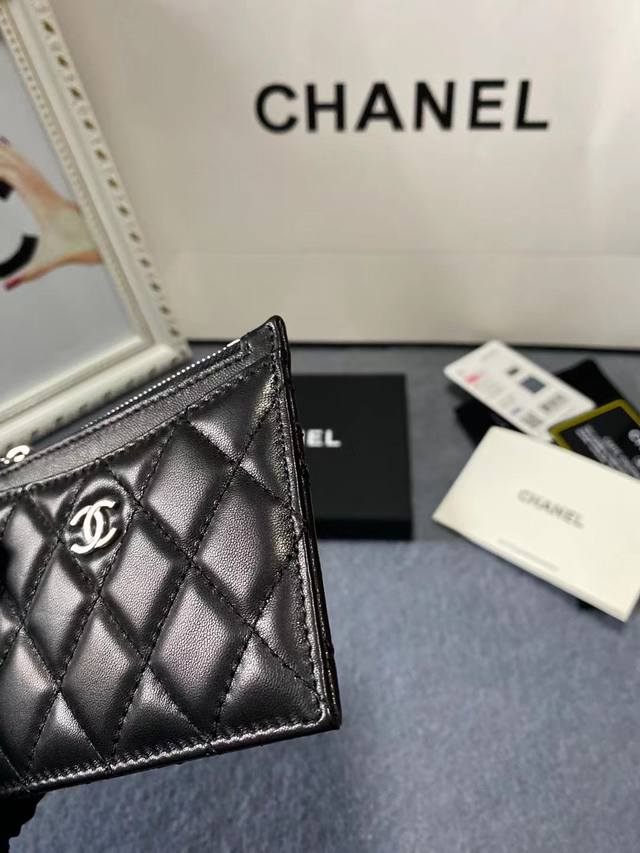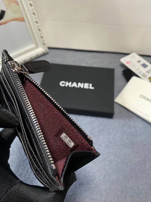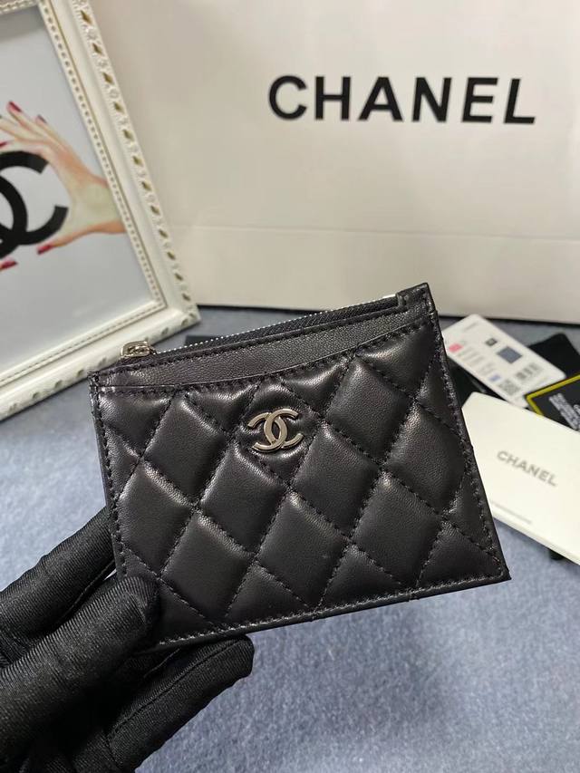 Loss-making price, Ch Nel. Imported lambskin single-zip card holder, style number A84105. Top-quality leather and hardware, original quality! Exquisite details, complete packaging! Size 9X11.5