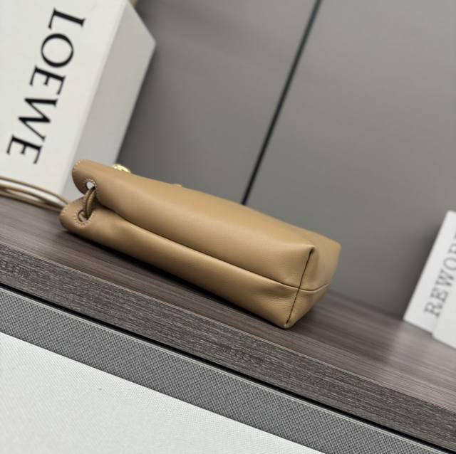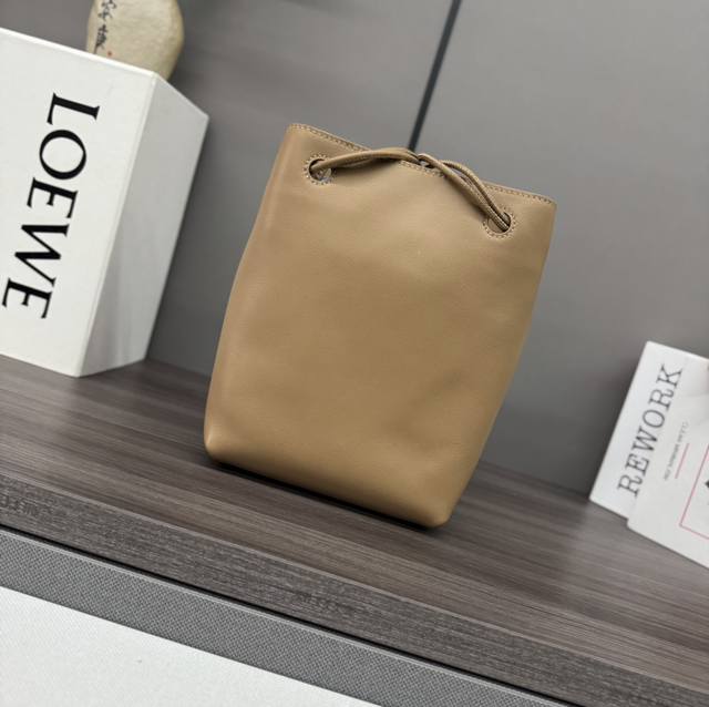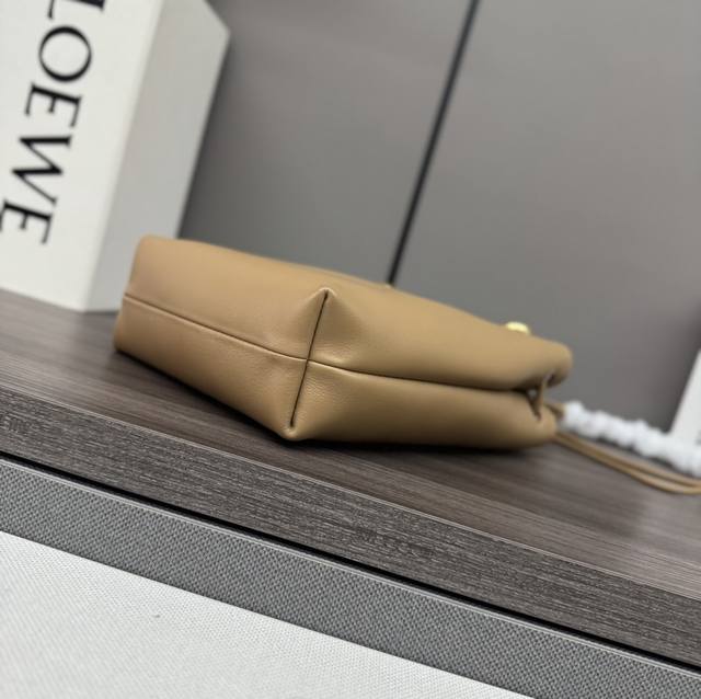 Low-gloss cowhide Pebble pouch with folding construction, tubular shoulder strap, and dual signature *Anagram Pebble design. Adjustable shoulder strap, 63cm-123cm long. One interior leather-lined pouch with low-gloss foil stamping and engraved Anagram logo. Model: 012444 Size: 17*7*21.5cm