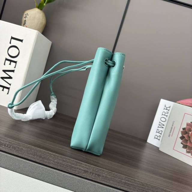 Low-gloss cowhide Pebble pouch with folding construction, tubular shoulder strap, and dual signature *Anagram Pebble design. Adjustable shoulder strap, 63cm-123cm length. One interior leather-lined pouch with low-gloss foil stamping and engraved Anagram logo. Model: 012444 Size: 17*7*21.5cm