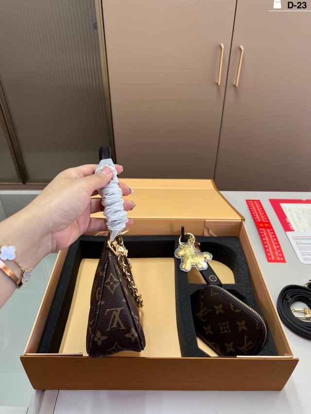 / Lv Catchy Catchy Handbag Horn Armrest Box Pendant + Card Holder D-23 Size 23