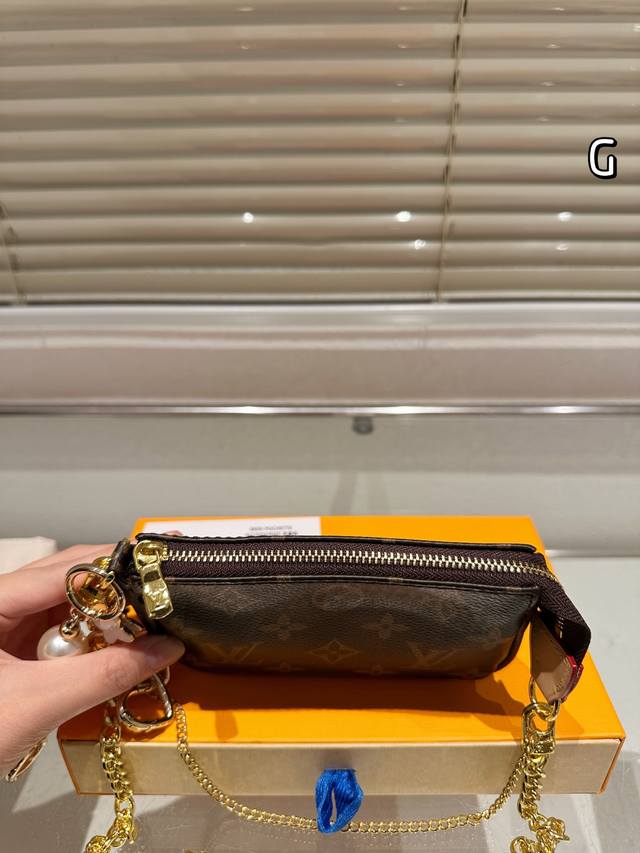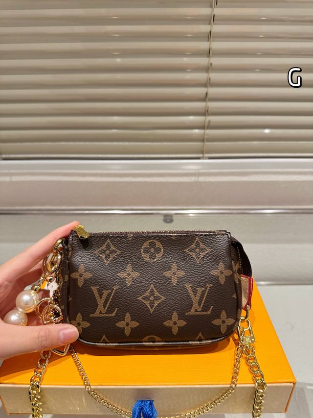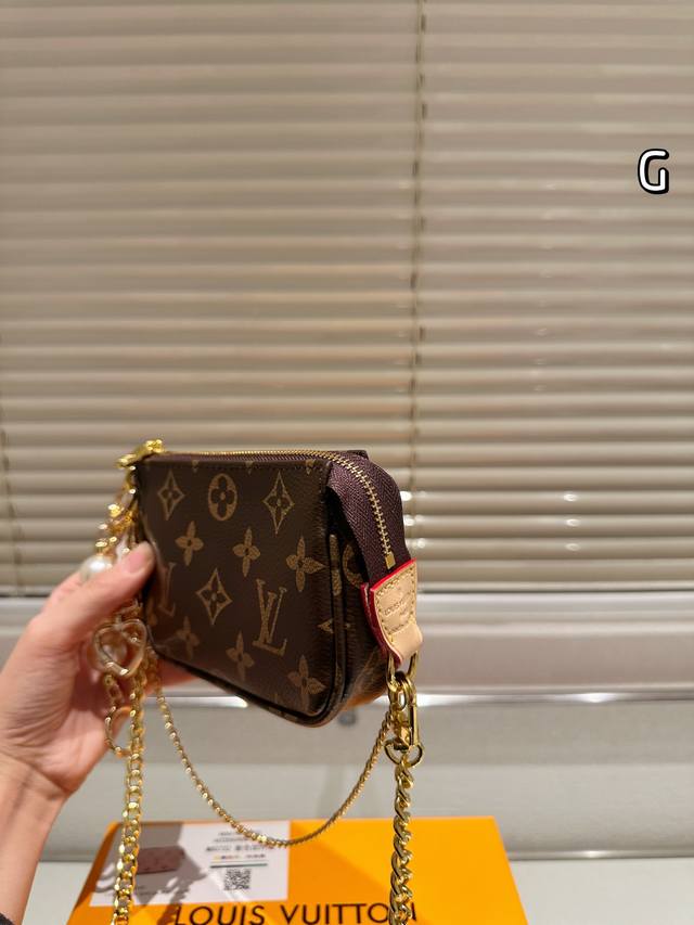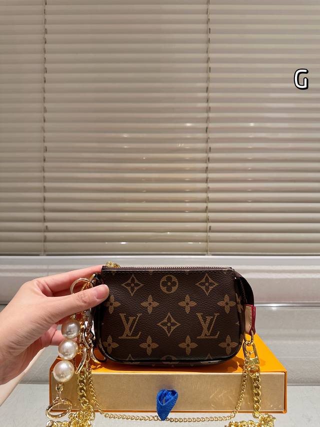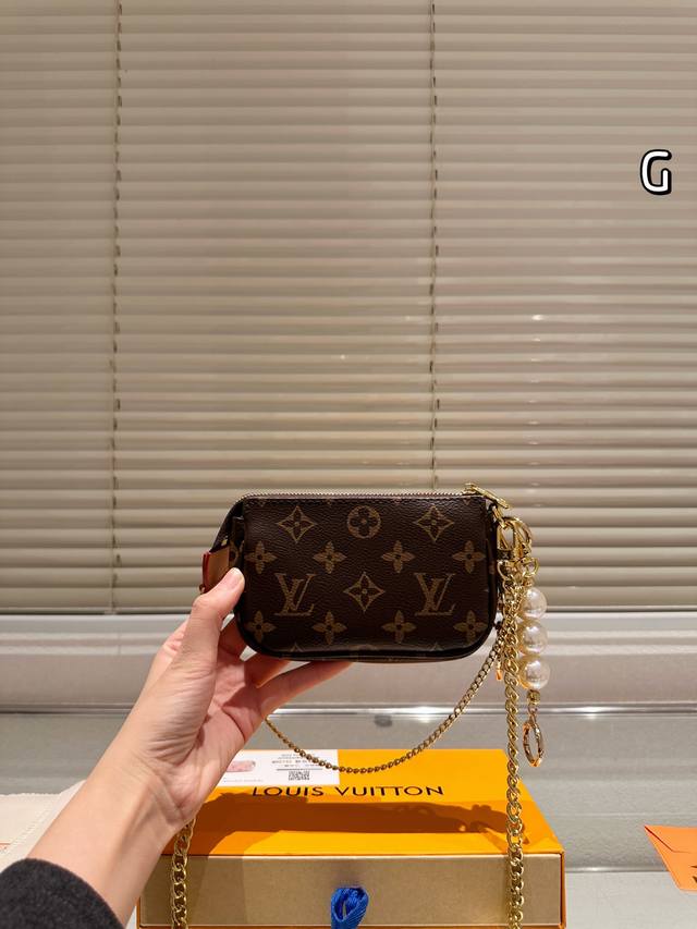 Lv Mini Pochette Accessory Handbag Summer By The Pool Capsule Collection. The first time this collection uses Monogramempreinte leather, featuring a gradient Monogram embossing. It can be suspended by a chain from the bag or belt. Full leather embossed silkscreen chain mahjong bag Oo [handshake][handshake]. This collection also includes leather accessories and ready-to-wear. Model: M80501 Size: 15.5X10.5X4Cm.