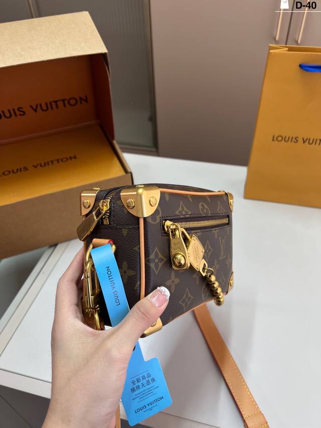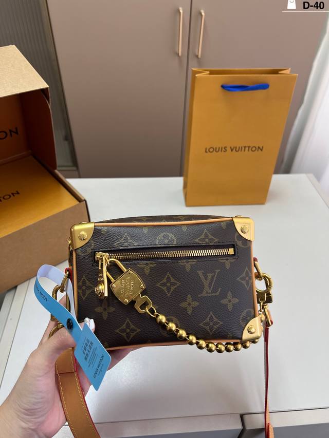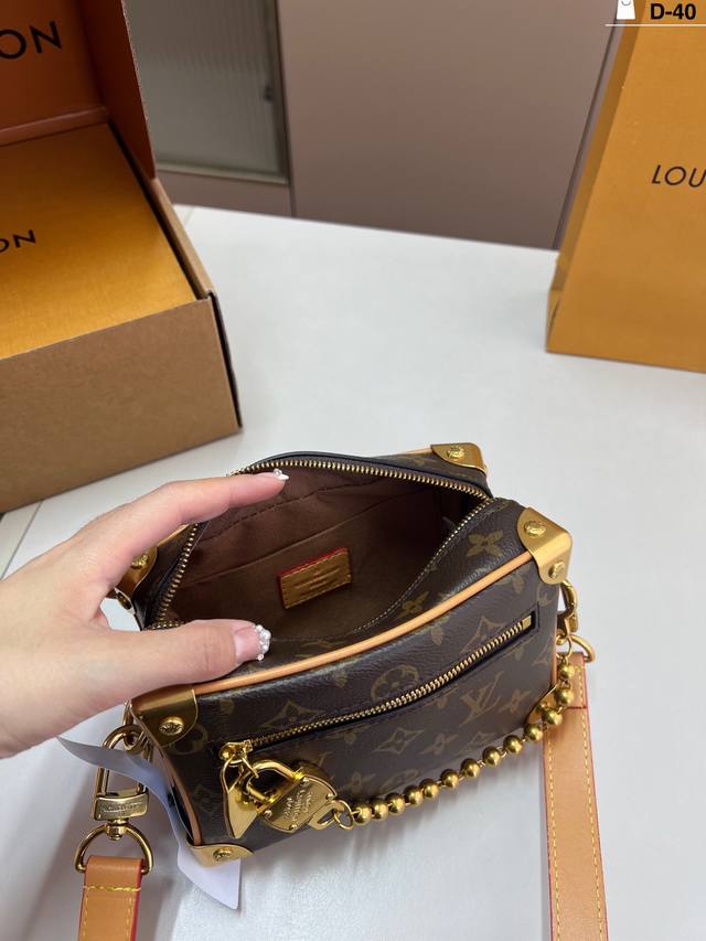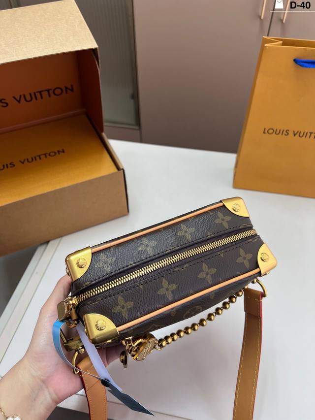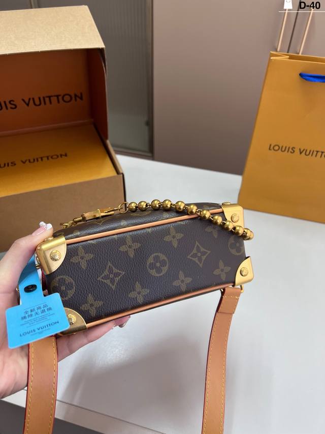 Lv Mini Soft Trunk, a show-stopping style. The Mallle Mini Soft is characterized by its monogram pattern and chain, which allows the bag to be carried on the shoulder or by hand. Size D-40 18