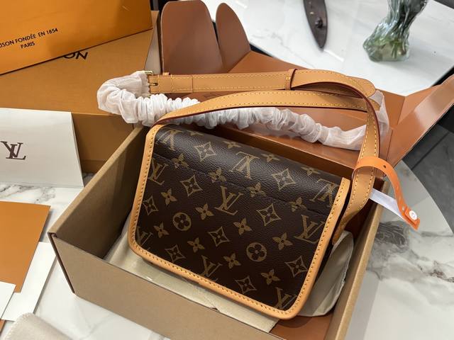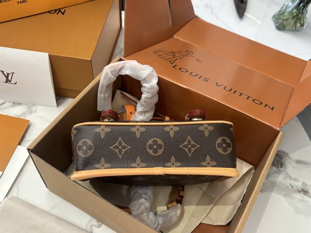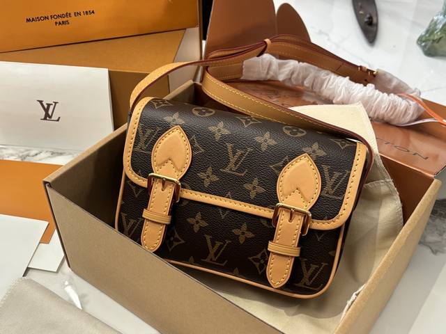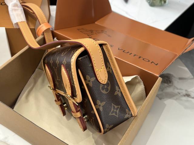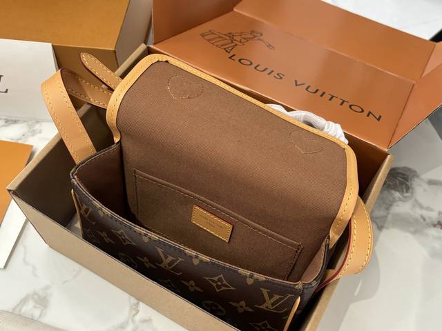 LV Satchel Mini Messenger Bag, classic Monogram canvas with beeswax-colored calfskin trim, full of retro and preppy style. Size: 19.5X15X7Cm.