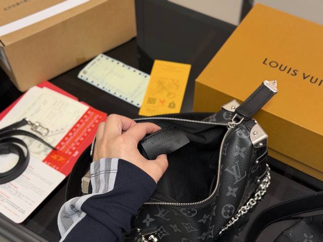 Classic monogram pattern, black and gray tones are especially versatile.