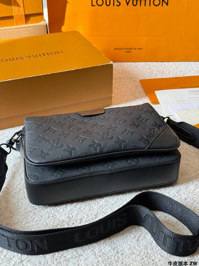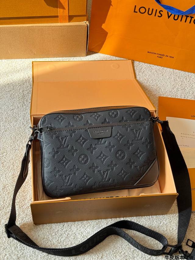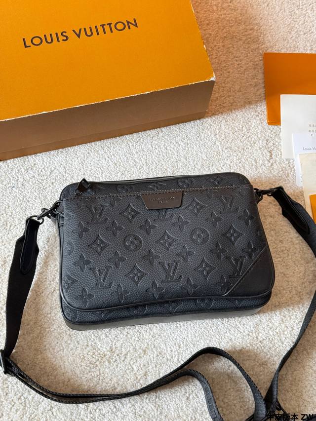 LV Trio 3-in-1 Messenger Bag (M46602) is made of Monogram Shadow embossed cowhide leather, which is soft and durable. It features black painted metal hardware for a subtle yet sophisticated look. Measuring 25 x 18.5 x 7 cm, the main compartment is spacious and includes a detachable zippered front pocket and a shoulder strap coin purse, offering flexible storage options. The adjustable shoulder strap allows for crossbody or shoulder wear, making it suitable for commuting, business, and travel. Made in France, Spain, Italy, and the USA, each bag has a serial number chip for guaranteed authenticity. Practical and stylish, a must-have for men!