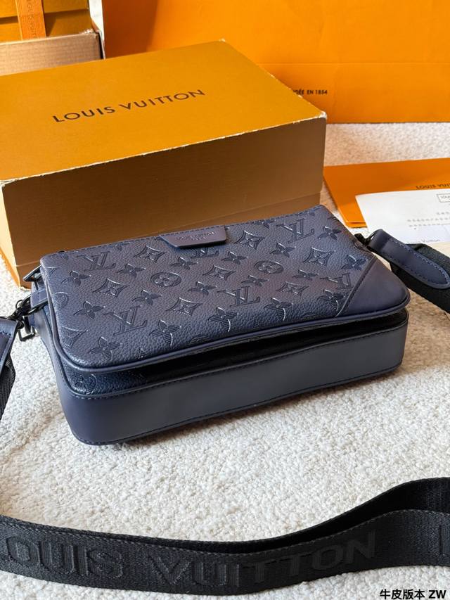 LV Trio 3-in-1 Messenger Bag (M46602) is made of Monogram Shadow embossed cowhide leather, which is soft and durable. It features black painted metal hardware for a subtle yet sophisticated look. Measuring 25 x 18.5 x 7 cm, the main compartment is spacious and includes a detachable zippered front pocket and a shoulder strap coin purse, offering flexible storage options. The adjustable shoulder strap allows for crossbody or shoulder wear, making it suitable for commuting, business, and travel. Made in France, Spain, Italy, and the USA, each bag has a serial number chip for guaranteed authenticity. Practical and stylish, a must-have for men!