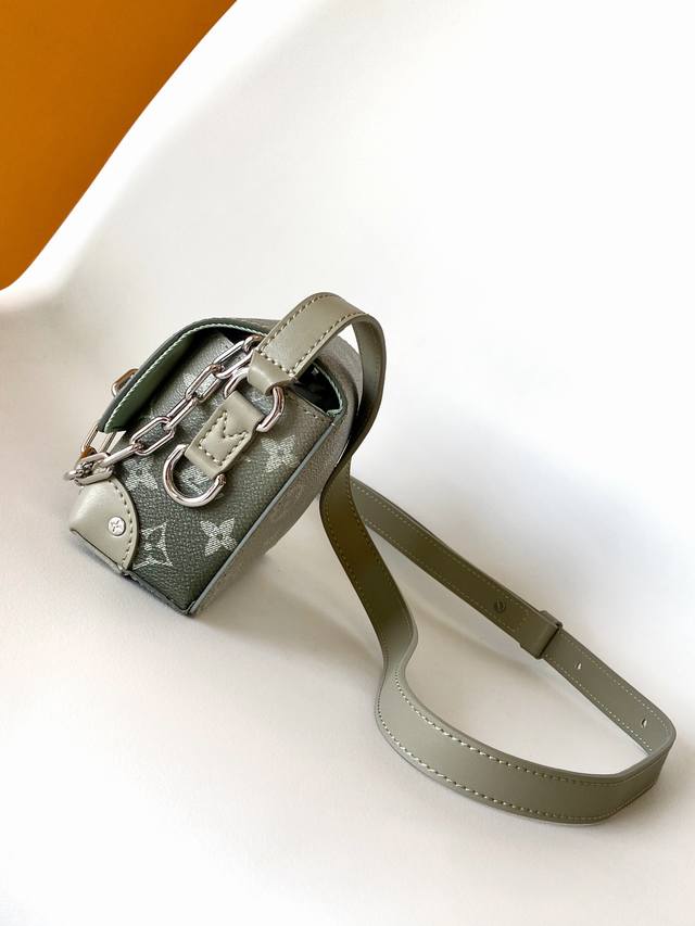 M11543 Rendered Green, M81783 Monogram Canvas, M82534 Waxed Leather Top-Grade Original: This Steamer mini handbag is crafted from Monogram Eclipse canvas, drawing inspiration from the chain and pin elements of the Louis Vuitton Steamer trunk. A suitable size to accommodate travel essentials, it features a zippered interior pocket and an adjustable shoulder strap. 18.0 X 11.0 X 6.5 cm (Length X Height X Width)