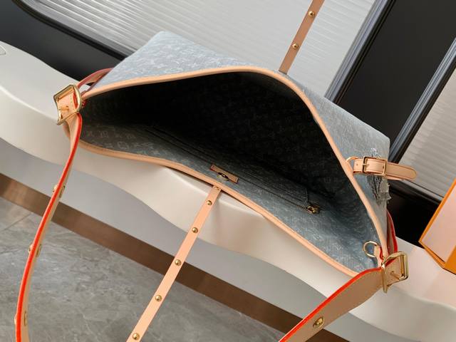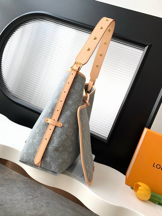 M13289 Matching Light-Colored Hardware Dynamic 163 Top-Tier Original Dynamic 163 This Carryall medium handbag features the Monogram Denim pattern, born in 2005, on a cotton surface, then uses Louis Vuitton's exquisite bleaching process to create a washed effect. Contrasting leather and a detachable nameplate accentuate the clean design, while a zippered interior pocket securely stores valuables, making it a modern choice for navigating the city. 39.0 X 30.0 X 15.0 cm (Length X Height X Width)