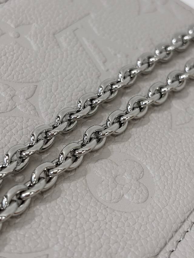 This elegant chain charm wallet, "Rosy," boasts a timeless classic burgundy hue that complements any style. Crafted from the brand's signature Monogram Empreinte leather, it's adorned with a gold-toned Lv Circle pattern and a smooth chain for easy shoulder carrying. This stylish design is a comfortable size to hold everyday essentials and features three card slots for secure credit card storage.