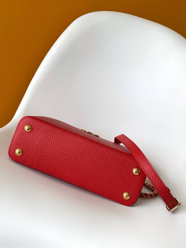 M13714 Black M13250 Red Premium Original Dynamic 163 This Capucines mini handbag encounters striking details from the Louis Vuitton x Takashi Murakami reissue series, highlighting a trendy style with fresh elements. The rattan body complements the handles, woven shoulder strap, and LV logo, while the top flap is delicately adorned with a cherry pattern. 27.0 X 17.6 X 9.0 cm Length X Height X Width