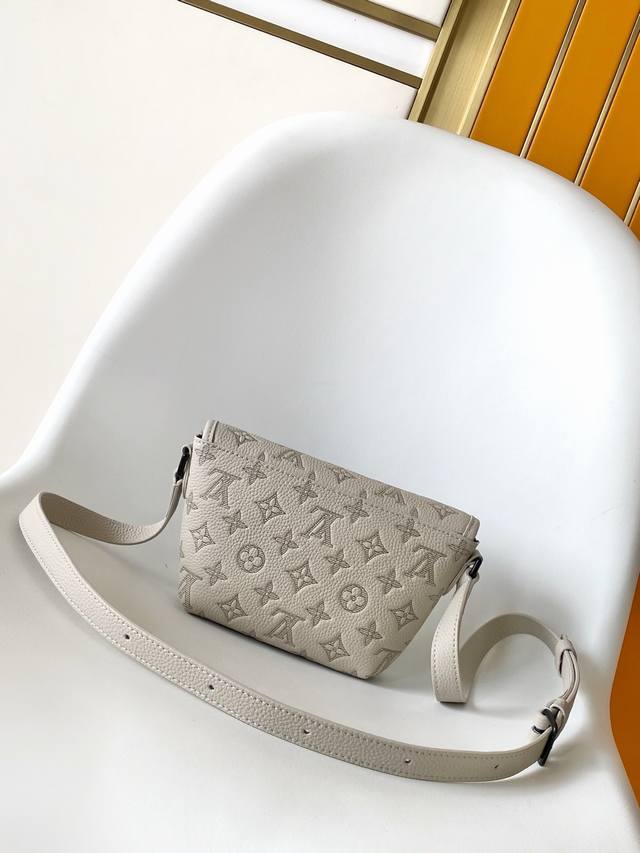 M14794 This original grey Pulse mini handbag features a modern new color in Monogram Shadow embossed cowhide leather, upgraded with a softer texture for a sophisticated design and comfortable carrying experience. Metal hardware and a zippered flap pocket subtly complement the bag's pattern. An adjustable shoulder strap offers both shoulder and crossbody options. 16 x 5 x 22.5 cm (H x W x Length)