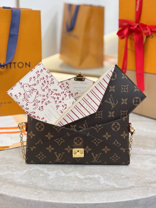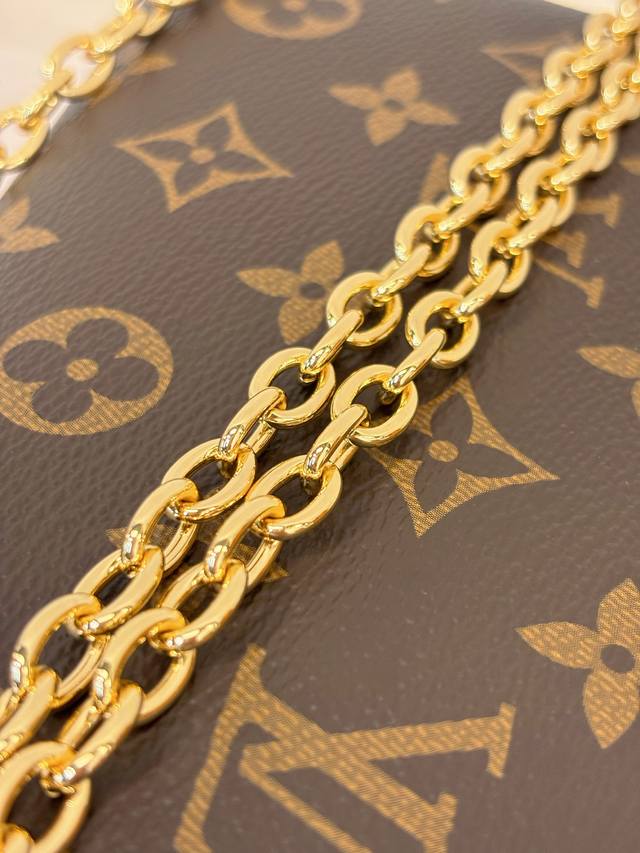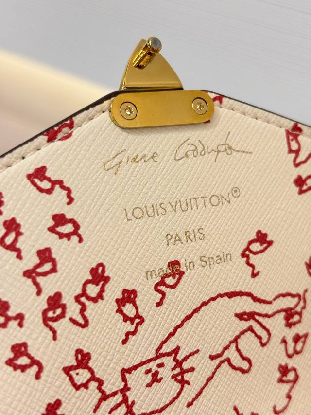 Lv's "Elegance on the Go" Coddington collection showcases this playful "origami chain bag." Crafted from the iconic Monogram canvas and featuring the brand's signature S-lock closure, it opens to reveal a lining adorned with a cute cat pattern hand-painted by Coddington himself. The interior includes a detachable zip pocket and a flat pocket that can hold up to six cards.