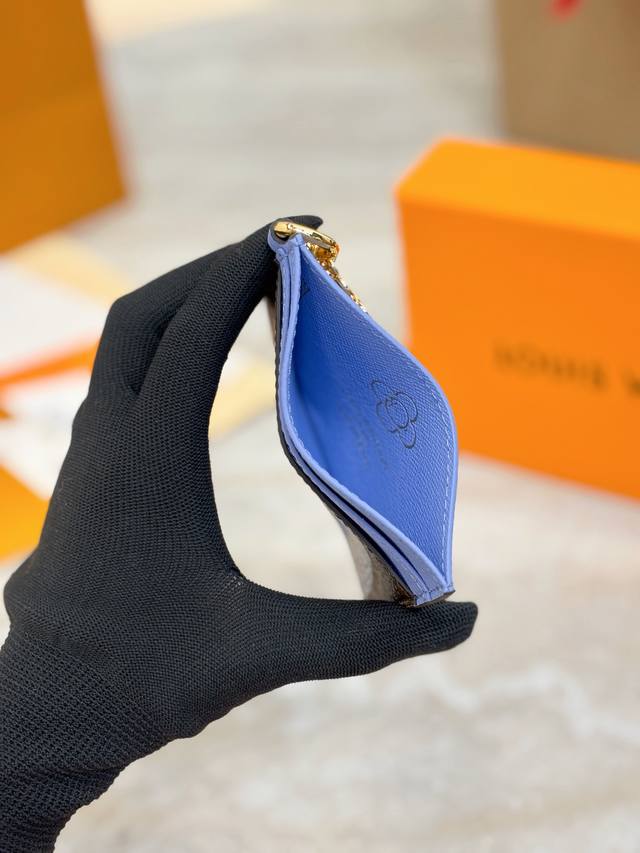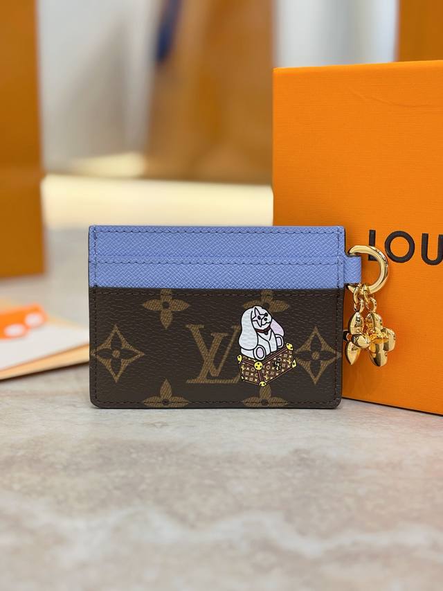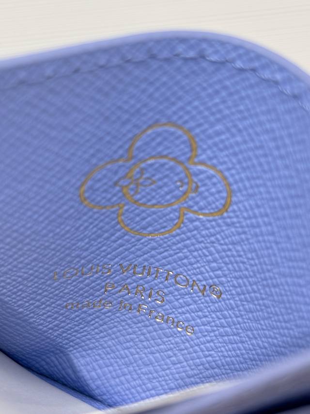 Lv Charms Card Holder features the iconic and adorable mascot "Vivienne" of the manor, giving it a lively "Porto Cult Lv Charm" feel. Playful illustrations adorn the monogram canvas symbolizing Louis Vuitton, trimmed with blue frosty leather for enhanced contrast. The design features multiple card slots, along with the charm of mimicking "Vivienne" and the classic monogram flower, making it truly captivating.
