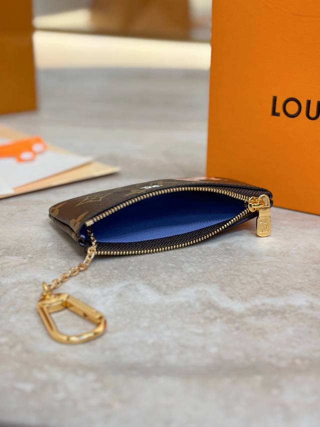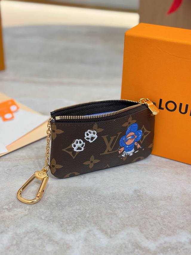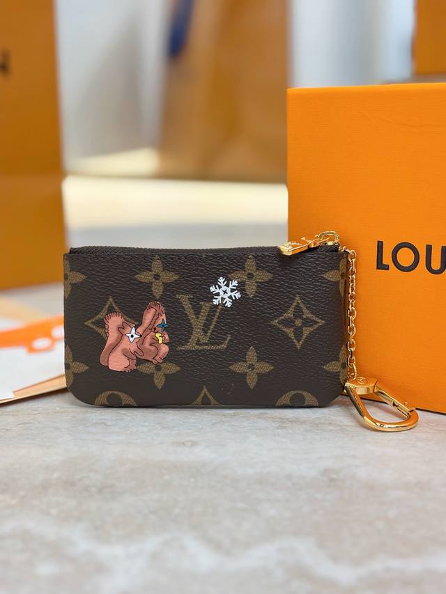 Vivienne Wintery Travel series, features a Monogram canvas with adorable illustrations and paw prints of the brand's mascot. It's paired with a lustrous key hook and leather lining, giving the classic design a touch of playful style.
