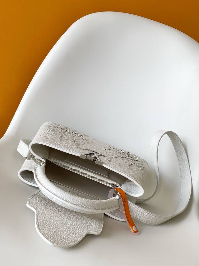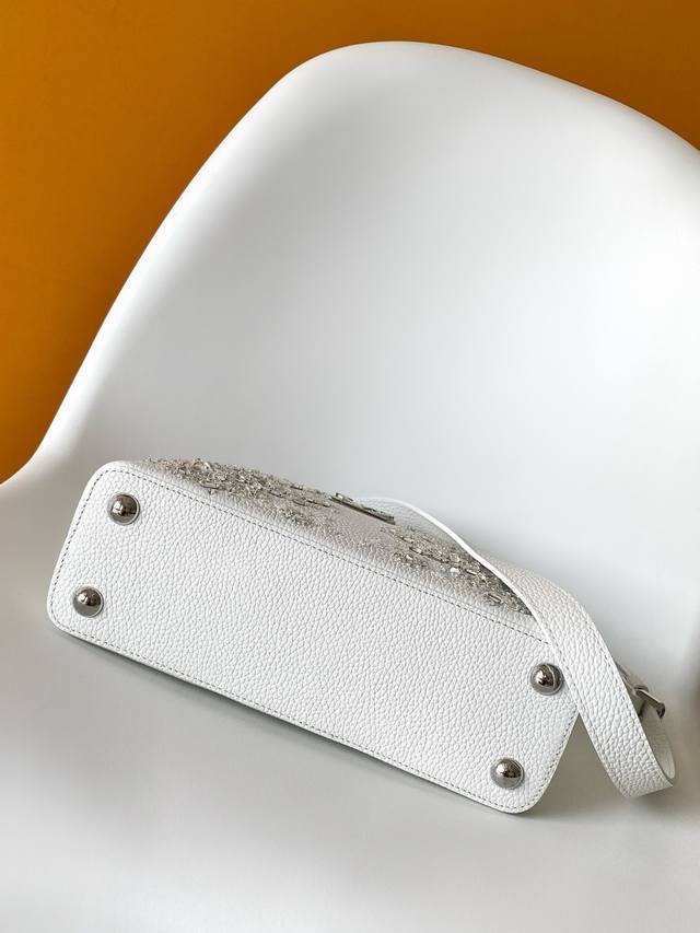 M25934 White M25716 Black Premium Original Dynamic 163 All Steel Ji As part of the "Extraordinary Collection," this Capuni mini bag has been redesigned with exquisite embroidery. Made of calfskin, it is decorated with shimmering sequins in a romantic floral pattern and paired with gold-tone metal hardware. The backpack design offers a divided interior space and pays homage to the brand's craftsmanship with the iconic LV initials. Dimensions: 21 x 13.6 x 8 cm; 27 x 17.3 x 9 cm (Length x Height x Width); Lily White calfskin leather with sequin embellishments; calfskin trim; calfskin lining; gold-tone hardware; double flap: inner or outer flap; divided interior structure with one flat pocket.