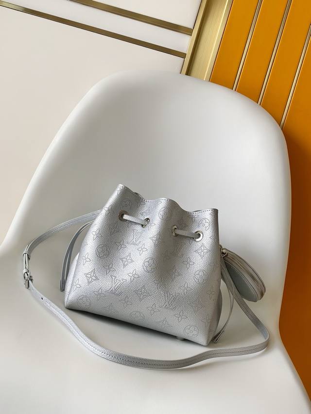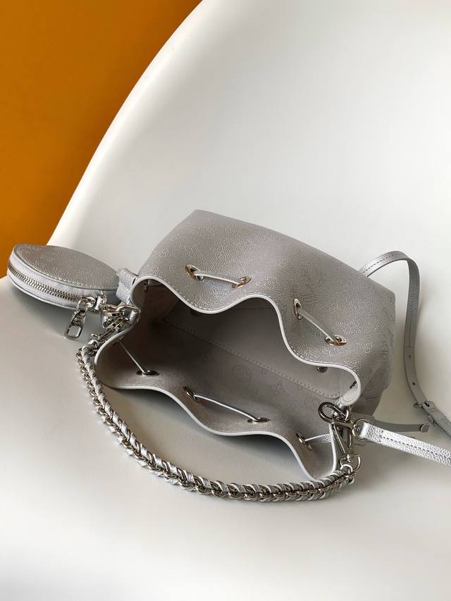 M26196 Silver M14315 Royal Blue M11841 Beige M11736 Pure White M25147 Green M22714 Light Purple M57536 Grey Pink M22176 Light Pink M21144 Light Blue M22198 Linen Blue M57070 Black M57068 Magnolia Pink M57201 Grey Top-quality original Bella bucket bag. Made of Monogram perforated calfskin, this bag features a compact design, with the same pattern housed in a miniature round coin purse, exuding modern style. Metal and leather woven handles and a detachable leather shoulder strap allow for multiple carrying options. 19.0 X 22.0 X 14.0 cm (Length X Height X Width)