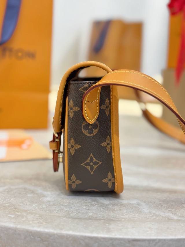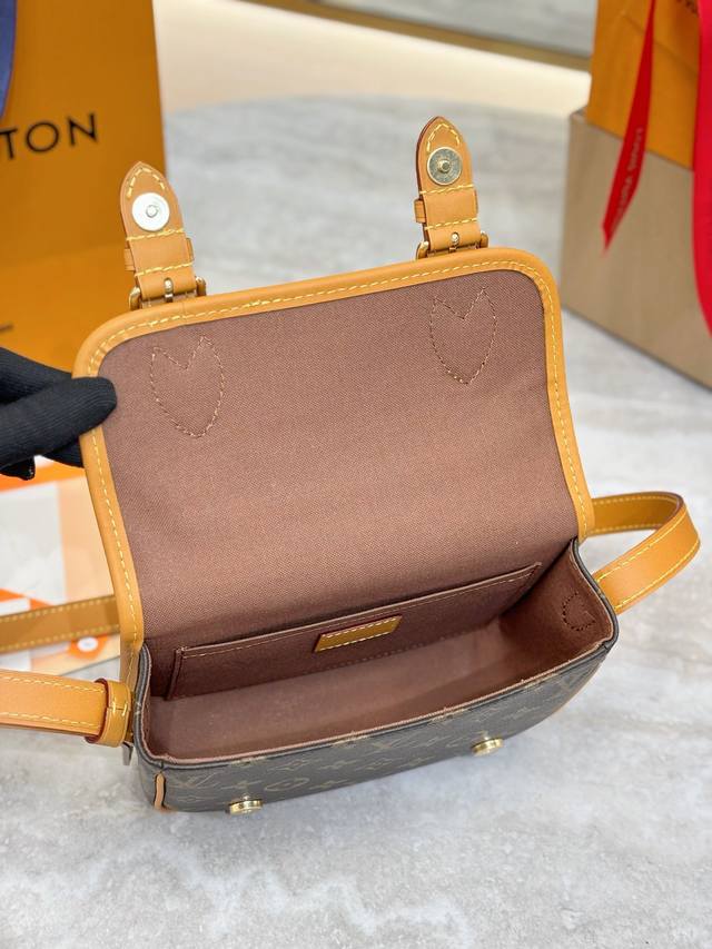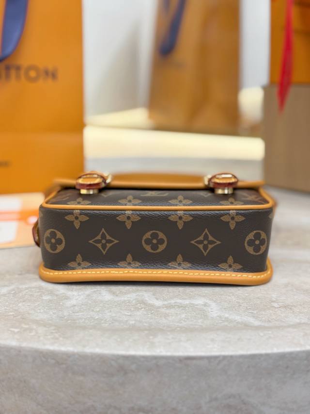 This Satchel mini handbag is from the Monogram Archive collection, featuring a soft Monogram canvas body with distressed leather trim and gleaming metal hardware. The mini messenger bag design can hold everyday essentials such as a phone and wallet. The adjustable shoulder strap ensures comfortable shoulder or crossbody wear.