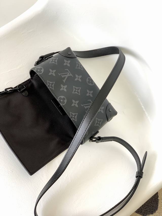 M81783 Top-tier replica Steamer mini handbag. This bag is crafted from Monogram Eclipse canvas, drawing inspiration from the chain and pin elements of the Louis Vuitton Steamer trunk. A suitable size for travel essentials, it features a zippered interior pocket and an adjustable shoulder strap. 18.0 x 11.0 x 6.5 cm (Length x Height x Width).