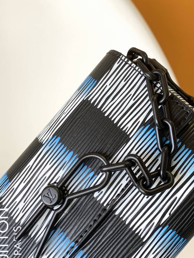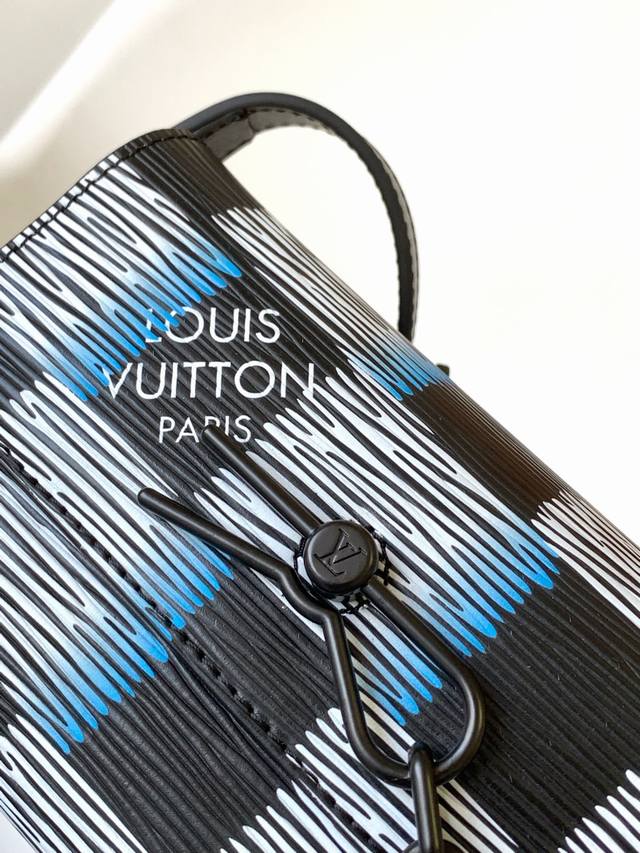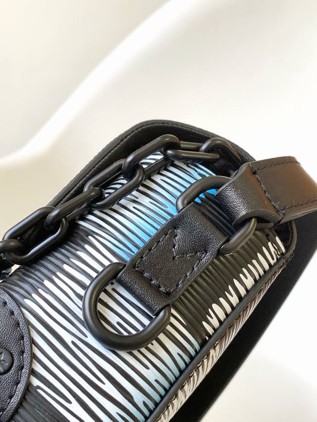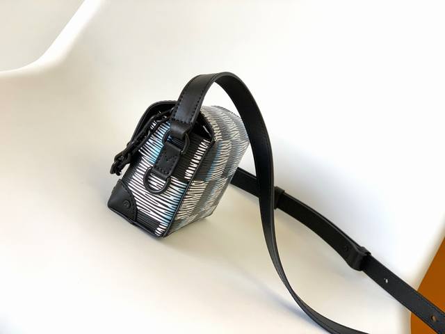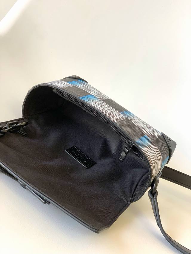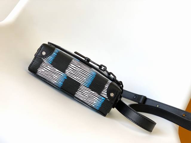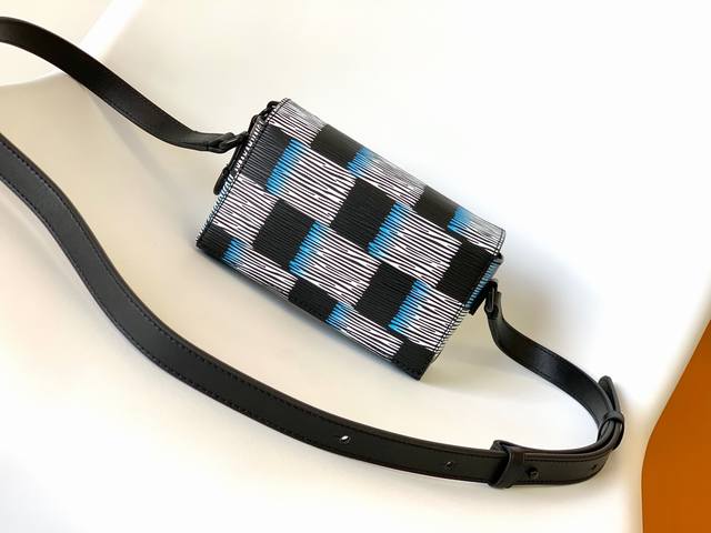 M82819 Black Night Checkered Men's Bag, Full Leather Water Eave Messenger Bag Series Steamer Wearable Wallet. This Steamer Wearable Wallet bag takes a backseat to classic Louis Vuitton handbag designs, cleverly incorporating the Damier Rush theme for spring/summer. Soft Epi XL calfskin leather is adorned with the iconic checkered pattern, depicting the enchanting moonlit sky. The trendy wearable design adds a touch of sophistication. 18 x 11 x 6.5 cm.