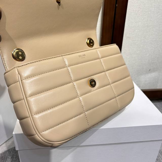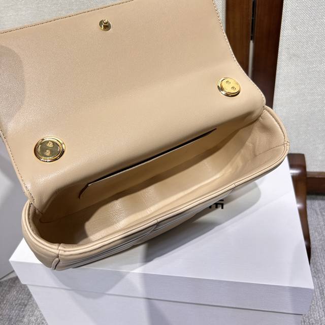 Matelasse Monochrome Quilted Lambskin Leather Chain Shoulder Bag. Featuring a new signature design and quilted silhouette. The unique quilting technique creates a modern shape, highlighting a rich texture. A metal logo adds a striking detail. Pair with a relaxed jacket and jeans for a chic French look. Model: 111273. Dimensions: 24 x 15 x 5 cm.