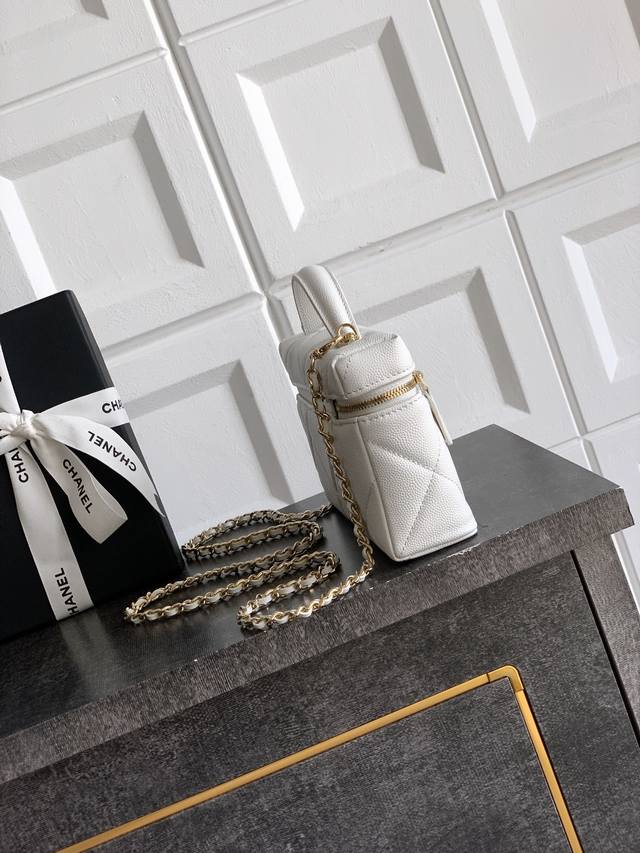 Milkshake White Export Product, Ohanel 25K Large Diamond Pattern Cowhide LP Box Bag in Black and Gold! A new classic and elegant LP box bag with a large diamond pattern. The double C logo on the front is eye-catching and exquisite. The cowhide material is very durable and not delicate at all. 17X19.5X5Cm. (