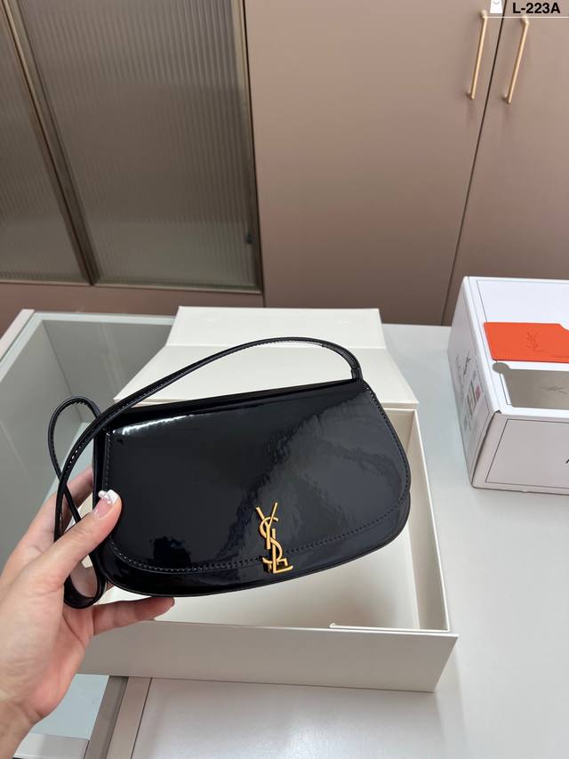 Mirror included. YSL Saint Laurent Voltaire Mini shoulder bag. Simple and elegant half-moon shaped design. Easily complements any outfit. L-223A size 20