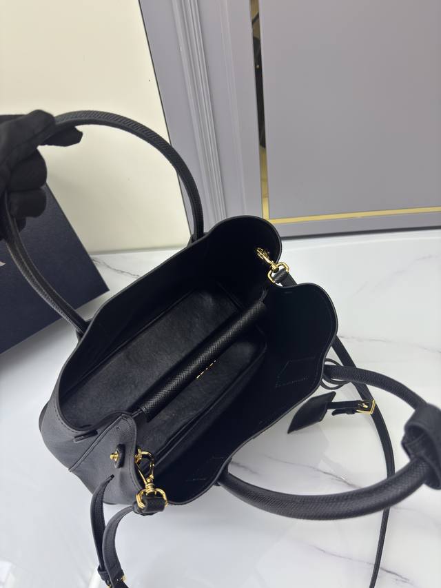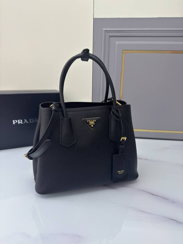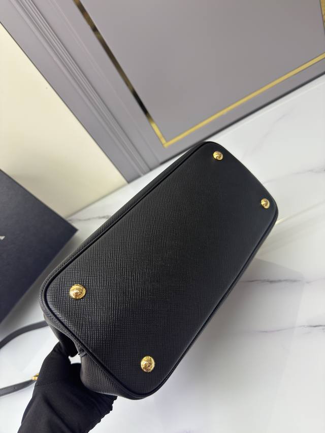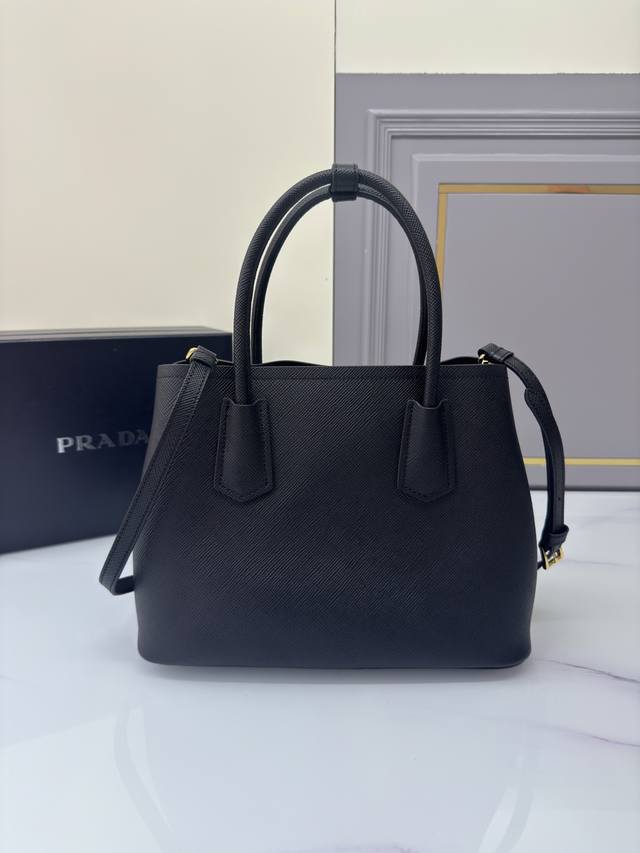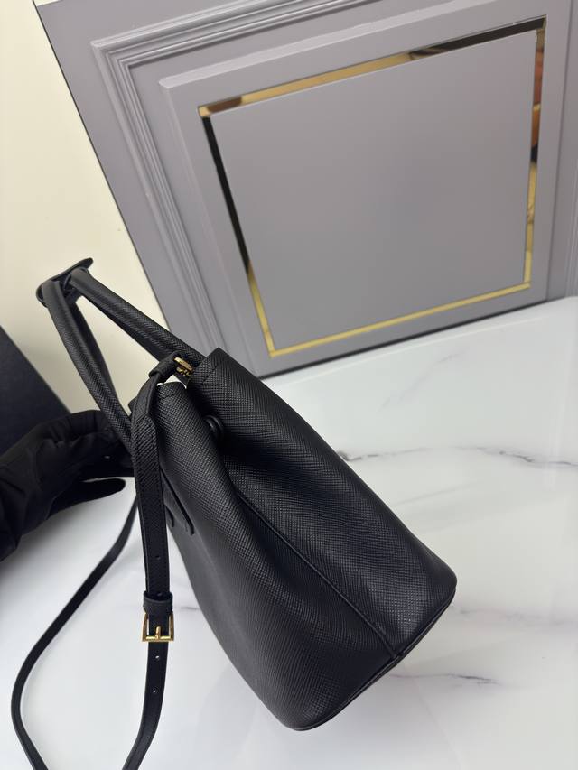 Model 1Bg887, Piguet Double Small Tote Bag. Made of Saffiano leather with detachable and adjustable leather shoulder strap and gold-plated hardware. Triangular leather with metal engraved logo on the sides. Features a snap closure, a flap closure, and an interior pocket. Soft lambskin lining. The bag has leather double handles. Adorned with gold-plated metal engraving and hardware, the detachable shoulder strap allows for versatile styling. Multiple interior pockets. Dimensions: 23 x 14 x 31 cm. (8069900)