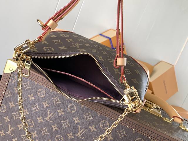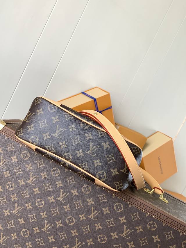 Odeon small handbag, conveying a vintage feel with Monogram canvas and reinforced leather corners. Adjustable shoulder strap for shoulder or crossbody wear, easily accessible with a simple zipper.