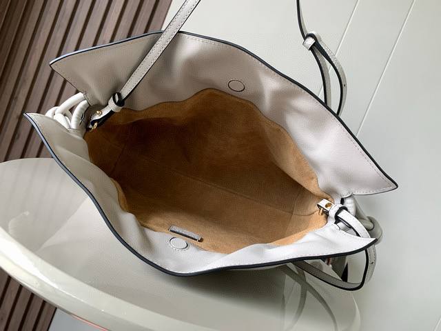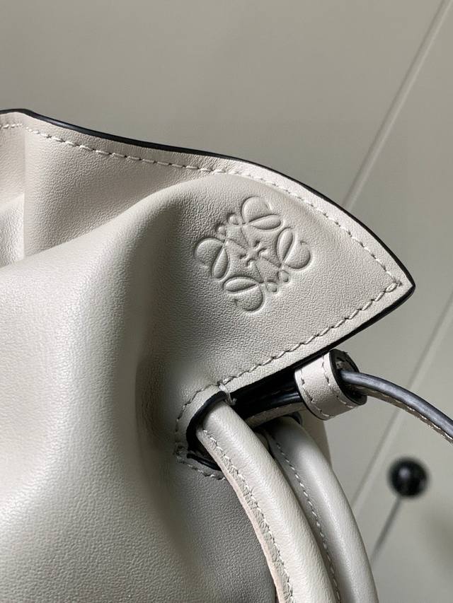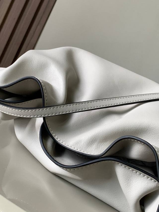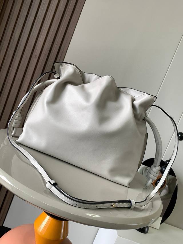 National Day Special Offer Lucky Bag 30cm New Nappa Calfskin Flamenco Handbag. This lucky bag features a drawstring closure and a signature coiled knot. Made from Nappa calfskin, this version perfectly showcases the softness of leather and practicality in the Flamenco Knot. It's safe to say that whatever you want to look for, you can find it in the Flamenco Knot. It perfectly combines a drawstring bag and a tote bag, giving women a unique feel. Although it looks incredibly simple, it's also very special, exuding a casual yet stylish vibe. The bag's name is the same as the flamenco dance of the Spanish Gypsies, which perfectly represents Loewe's casual, elegant, and individualistic design style. The leather is smooth Spanish calfskin, with a particularly soft feel. The suede leather lining is sturdy and scratch-resistant. Highly featured in street style photos, it can be used as a shoulder bag or a tote bag. The distinctive drawstring design and soft leather construction, when tightened, create a smoother silhouette, making it suitable for both work and leisure. Size: 30cm~24.5cm~10.5cm Style Number: 9015 Color: Light Gray