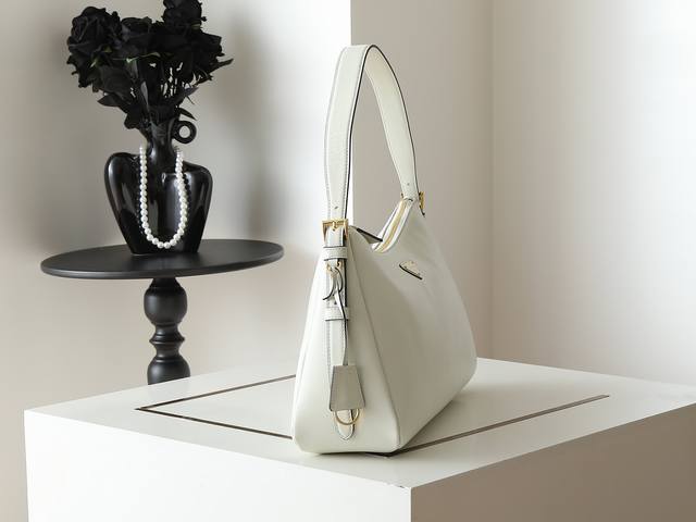 New Aimee Hobo Shoulder Bag 1Bc228 This leather hobo shoulder bag features a simple yet elegant design, made of imported calfskin, with a metal triangular enamel logo on the front and a detachable leather shoulder strap. The leather is delicate and soft, practical, lightweight, spacious, and versatile