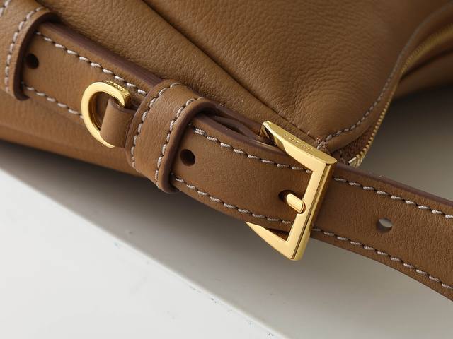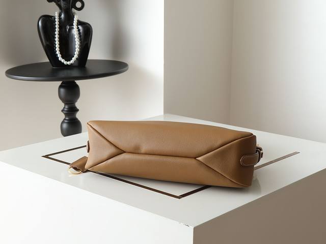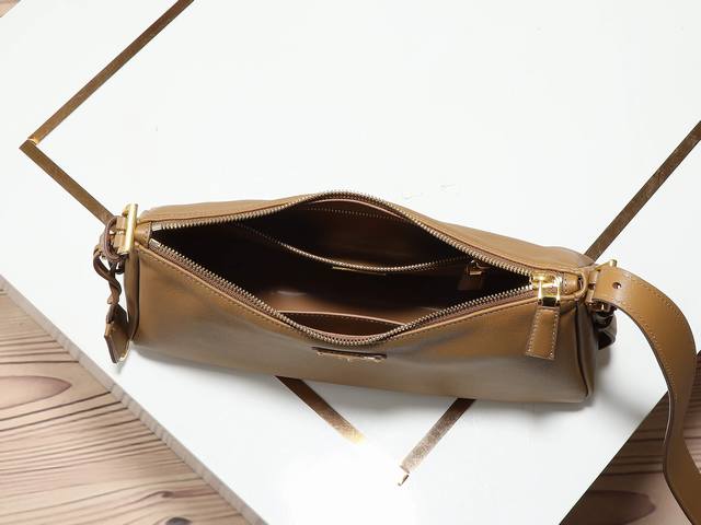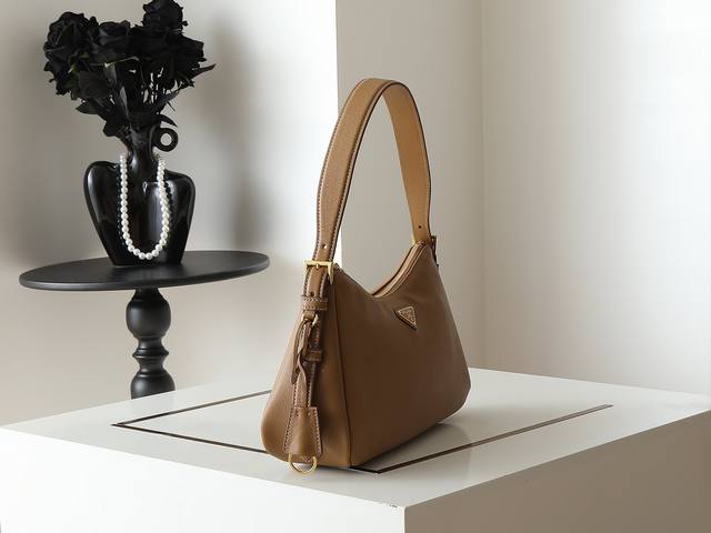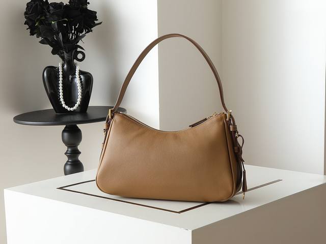 This leather hobo underarm bag features a simple yet elegant design, made of imported calfskin, with a metal triangular enamel logo on the front and a detachable leather shoulder strap. The leather is delicate and soft, practical, lightweight, spacious, and versatile