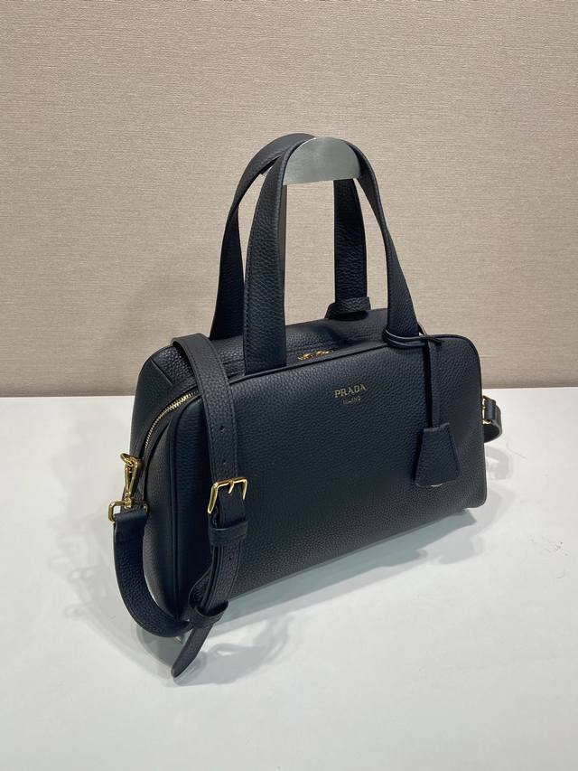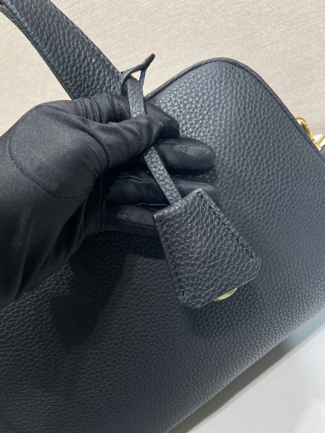 This top-handle bag, crafted from natural grain leather, is reinterpreted with a soft silhouette. It can be carried by hand or worn with the detachable shoulder strap and comes with two detachable tags. Metal hardware. Features an embossed logo on the front, a zip closure, two pockets (one zippered), and ample space. A timeless and popular style. Grab yours now!