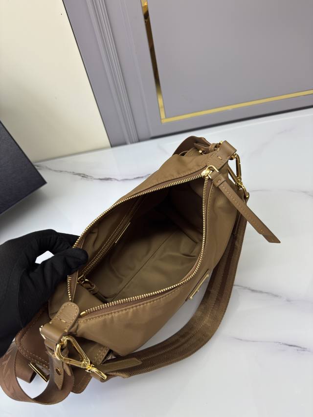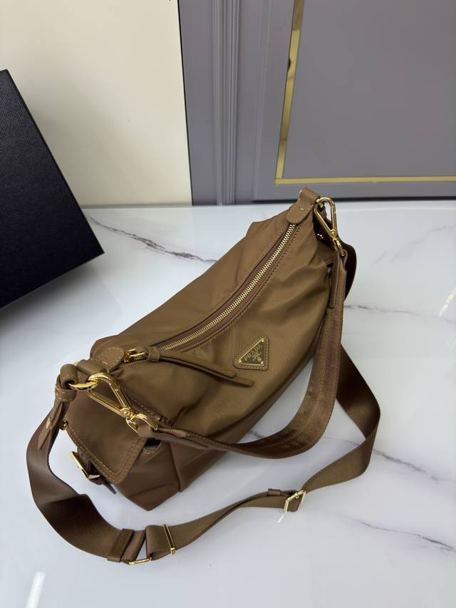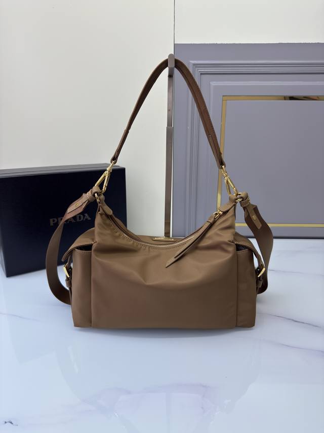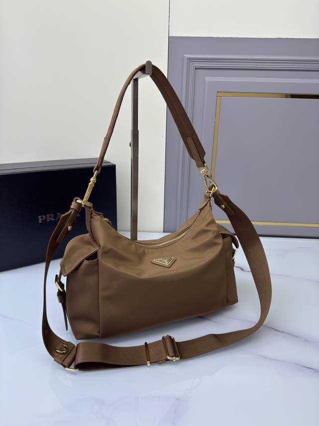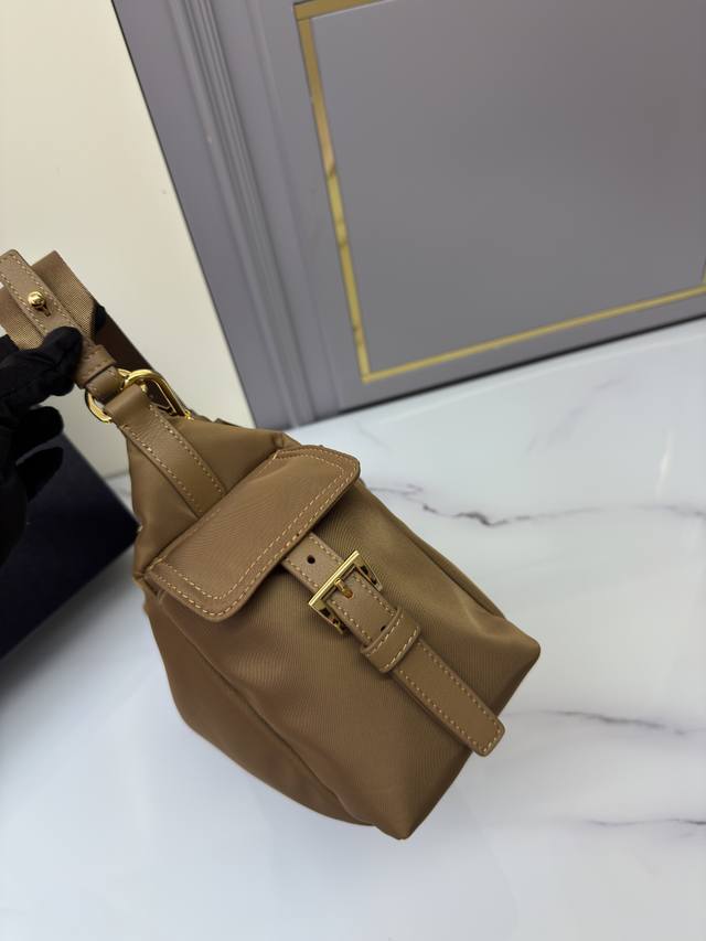 This explorer bag is made of imported nylon fabric and calfskin, featuring a soft silhouette and multiple pockets. The lightweight and practical Re-Nylon emphasizes the design's versatility, while leather details and signature embellishments reflect P's handcrafted heritage. It comes with two detachable, adjustable woven logo shoulder straps. It boasts a large capacity and a very stylish look. Another timeless bestseller. A must-have!