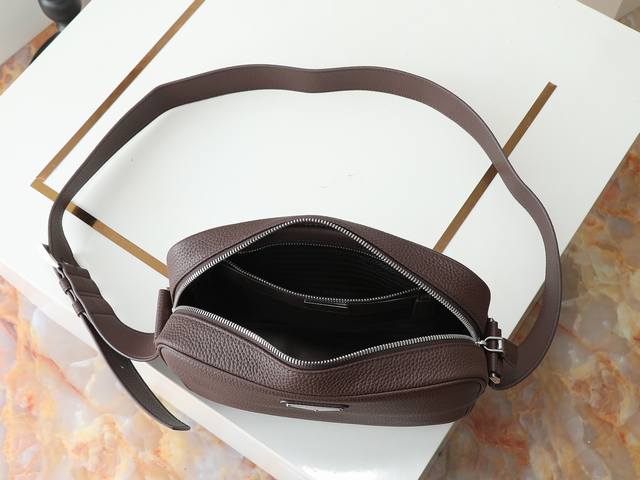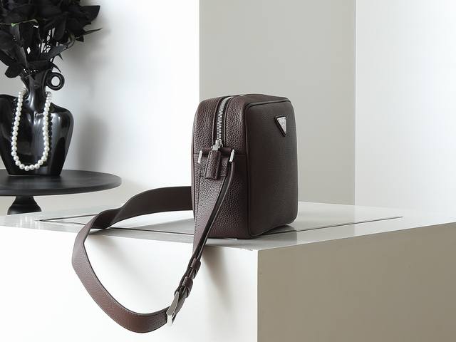 This shoulder bag is simple, compact, and versatile, made from soft and supple leather. Adorned with the iconic triangular logo, stylish details enhance the minimalist silhouette. It features an adjustable shoulder strap with a metal buckle. Zipper closure, interior zip pocket, and ample storage space. A timeless and popular style, grab yours now!