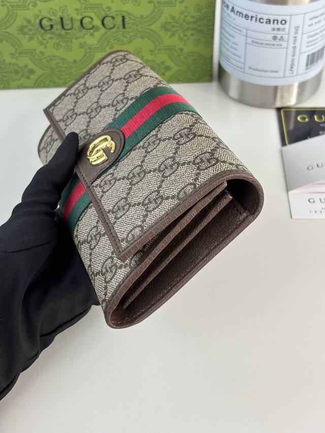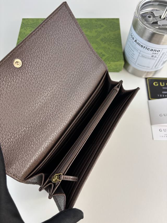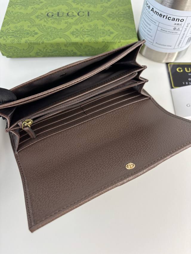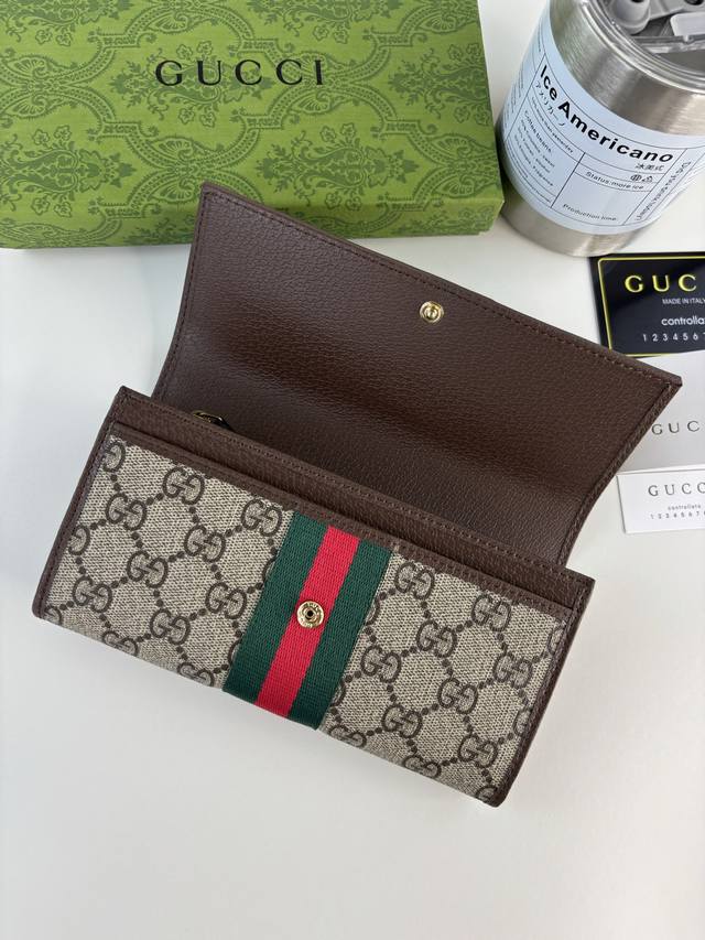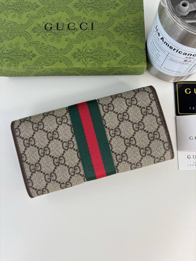 New arrival from Guccl official website! Ophidia series long wallet, made of Gg Supreme pigskin with PVC and the iconic double G hardware, classic red and green webbing, and high-end cotton fabric chain