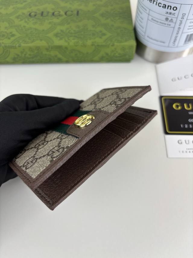 New arrival, synchronized with Guccl official website! Ophidia series cardholder/wallet, made of Gg Supreme pigskin with PVC and the iconic double G hardware, classic red and green webbing, and high-end cotton zipper